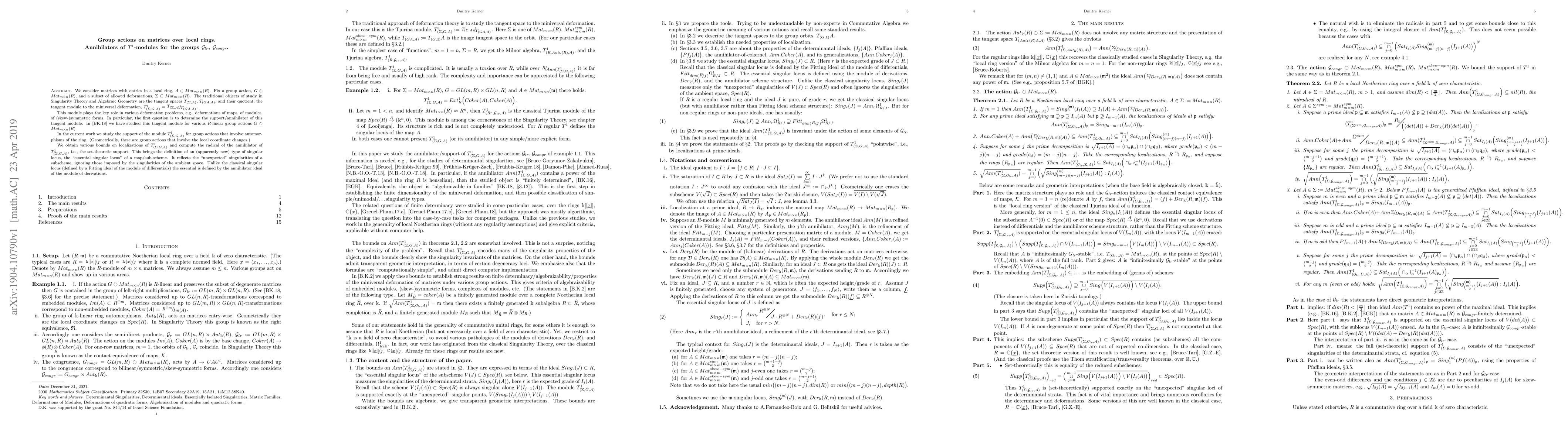 We consider matrices with entries in a local ring, Mat(R). Fix a group action, G on Mat(R), and a subset of allowed deformations, \Sigma. The traditional objects of study in Singularity Theory and Algebraic Geometry are the tangent spaces T_{(\Sigma,A)}, T_{(GA,A)}, and their quotient, the tangent module to the miniversal deformation, T^1_{(\Sigma,G,A)}. This module plays the key role in various deformation problems, e.g., deformations of maps, of modules, of (skew-)symmetric forms. In particular, the first question is to determine the support/annihilator of this tangent module. In [Belitski-Kerner.1] we have studied this tangent module for various R-linear group actions. In the current work we study the support of the module T^1_{(\Sigma,G,A)} for group actions that involve automorphisms of the ring. (Geometrically, these are group actions that involve the local coordinate changes.) We obtain various bounds on localizations of T^1_{(\Sigma,G,A)} and compute the radical of the annihilator of T^1_{(\Sigma,G,A)}, i.e., the set-theoretic support. This brings the definition of an (apparently new) type of singular locus, the "essential singular locus" of a map/sub-scheme. It reflects the "unexpected" singularities of a subscheme, ignoring those imposed by the singularities of the ambient space. Unlike the classical singular locus (defined by a Fitting ideal of the module of differentials) the essential is defined by the annihilator ideal of the module of derivations.