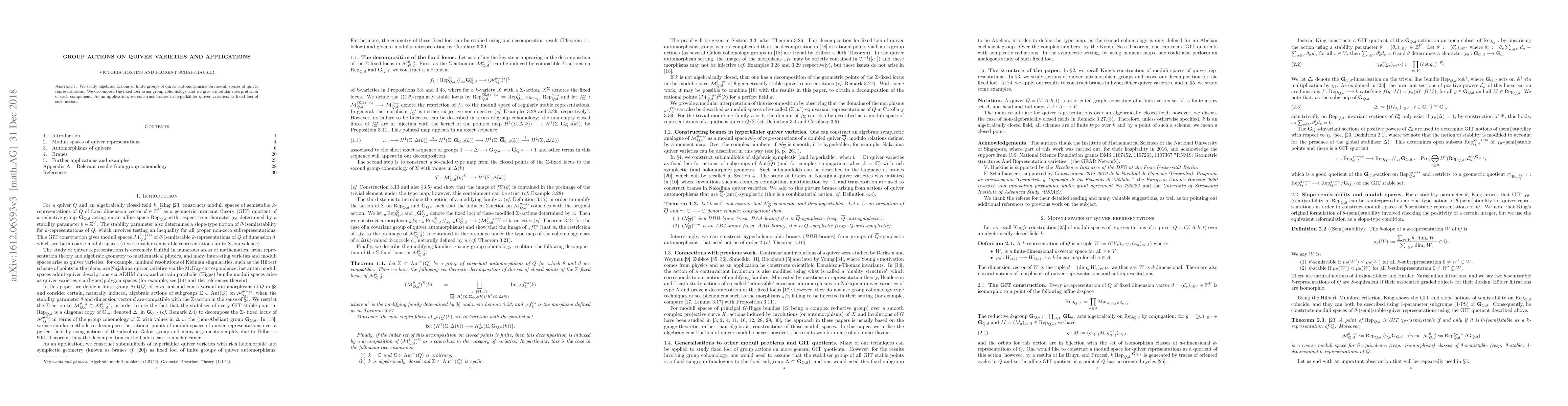 Summary: This paper investigates algebraic actions of finite groups on quiver representations, decomposes their fixed loci through group cohomology, and interprets each component modularly, ultimately constructing branes in hyperkähler quiver varieties.