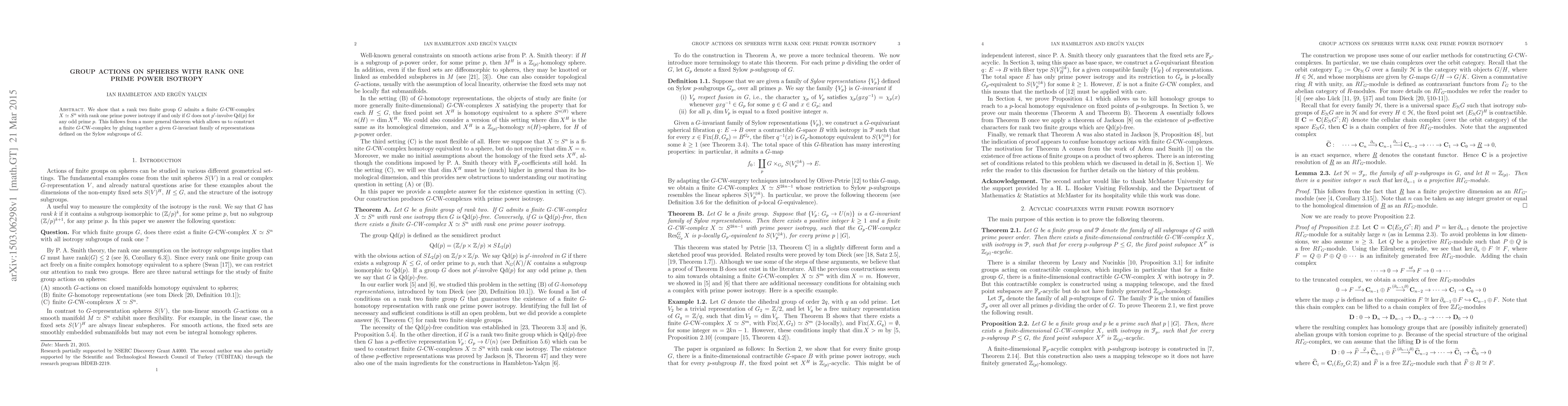 A finite group G can form a sphere-like structure with specific isotropy properties if it doesn't involve certain prime powers in its representations, as shown in this research paper.