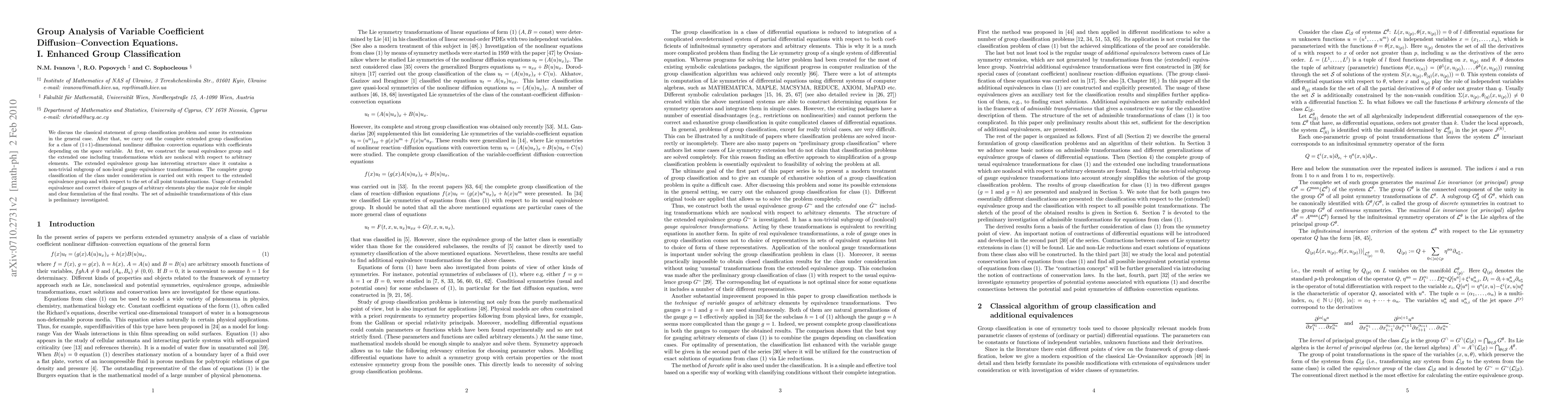 We discuss the classical statement of group classification problem and some its extensions in the general case. After that, we carry out the complete extended group classification for a class of (1+1)-dimensional nonlinear diffusion--convection equations with coefficients depending on the space variable. At first, we construct the usual equivalence group and the extended one including transformations which are nonlocal with respect to arbitrary elements. The extended equivalence group has interesting structure since it contains a non-trivial subgroup of non-local gauge equivalence transformations. The complete group classification of the class under consideration is carried out with respect to the extended equivalence group and with respect to the set of all point transformations. Usage of extended equivalence and correct choice of gauges of arbitrary elements play the major role for simple and clear formulation of the final results. The set of admissible transformations of this class is preliminary investigated.