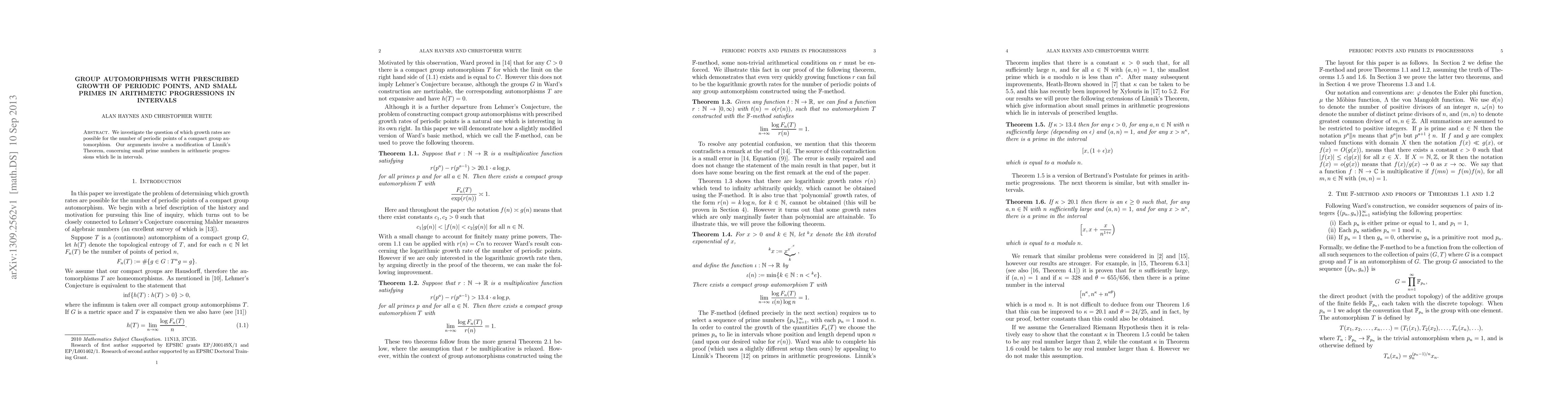 We investigate the question of which growth rates are possible for the number of periodic points of a compact group automorphism. Our arguments involve a modification of Linnik's Theorem, concerning small prime numbers in arithmetic progressions which lie in intervals.