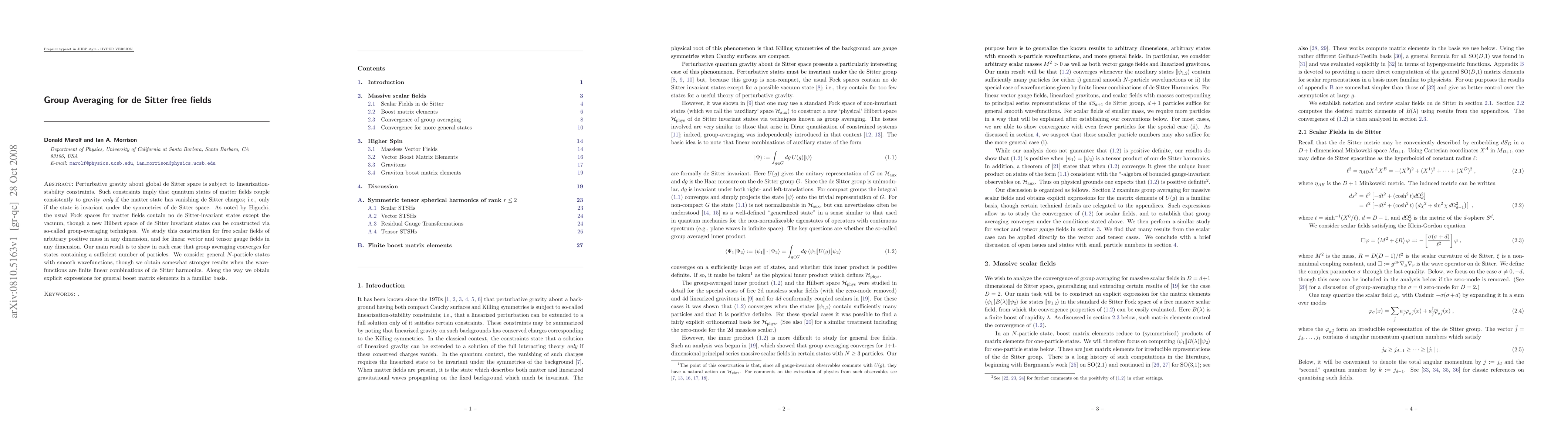 This paper investigates the construction of a new Hilbert space for de Sitter-invariant states using group-averaging techniques for free fields, demonstrating that this method converges for states with a sufficient number of particles. The study focuses on scalar, vector, and tensor fields in any dimension, providing explicit results for boost matrix elements.