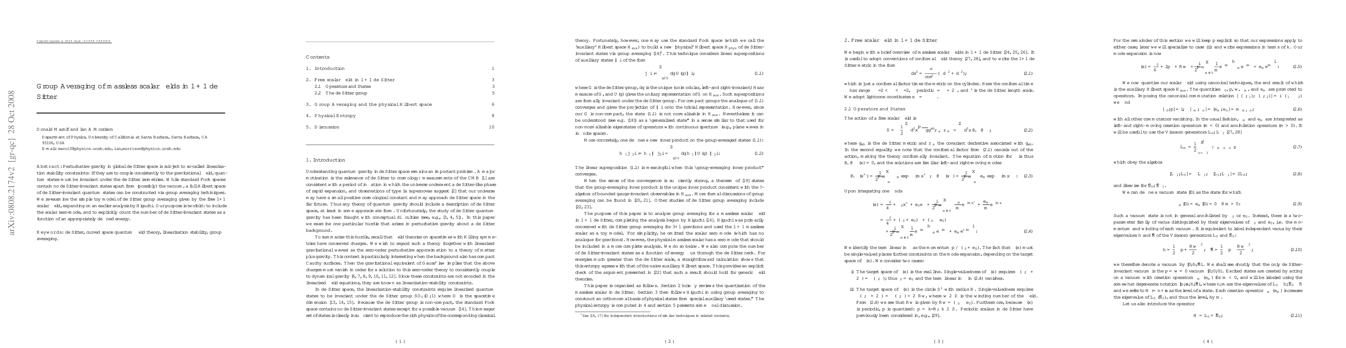 This paper explores the construction of a full Hilbert space of de Sitter-invariant quantum states through group averaging techniques, focusing on the free 1+1 scalar field in global de Sitter space. It aims to include the scalar zero-mode and explicitly determine the number of invariant states as a function of energy.
