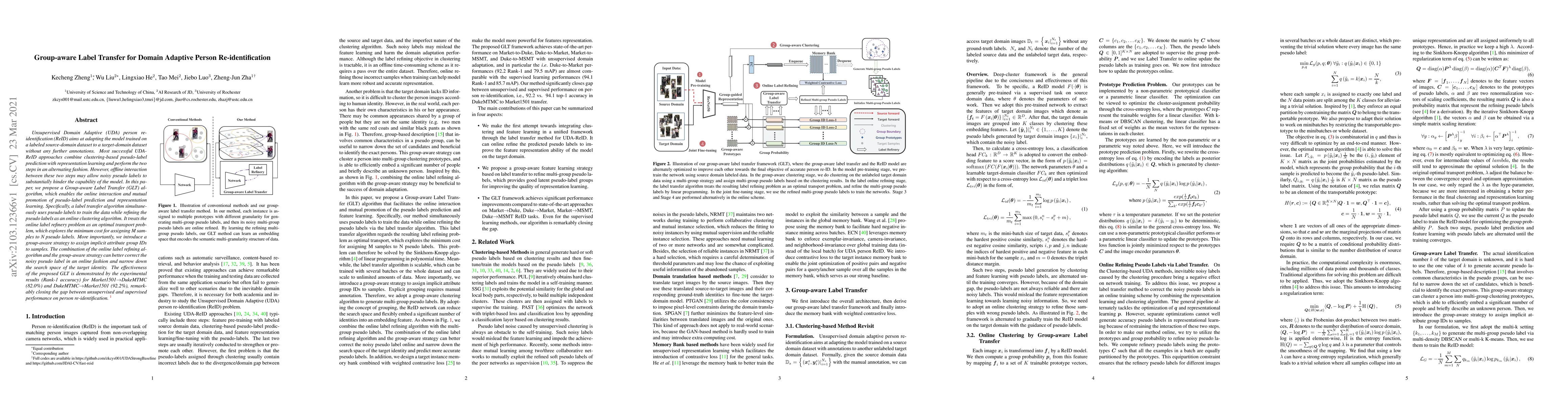 This paper proposes a Group-aware Label Transfer (GLT) algorithm for unsupervised domain adaptive person re-identification, which enhances the online interaction between pseudo-label prediction and representation learning to correct noisy labels. The method achieves significant improvements in accuracy, closing the performance gap between unsupervised and supervised approaches.