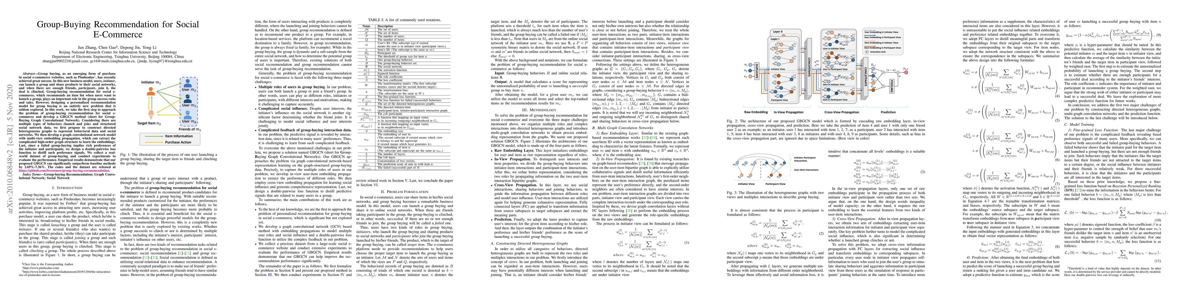 This paper introduces a novel GBGCN method for recommending items in group-buying scenarios on social e-commerce platforms, leveraging graph convolutional networks to model heterogeneous social network data and user behaviors. Experimental results show that GBGCN outperforms baseline methods by 2.69%-7.36%, demonstrating its effectiveness in enhancing group-buying success rates.