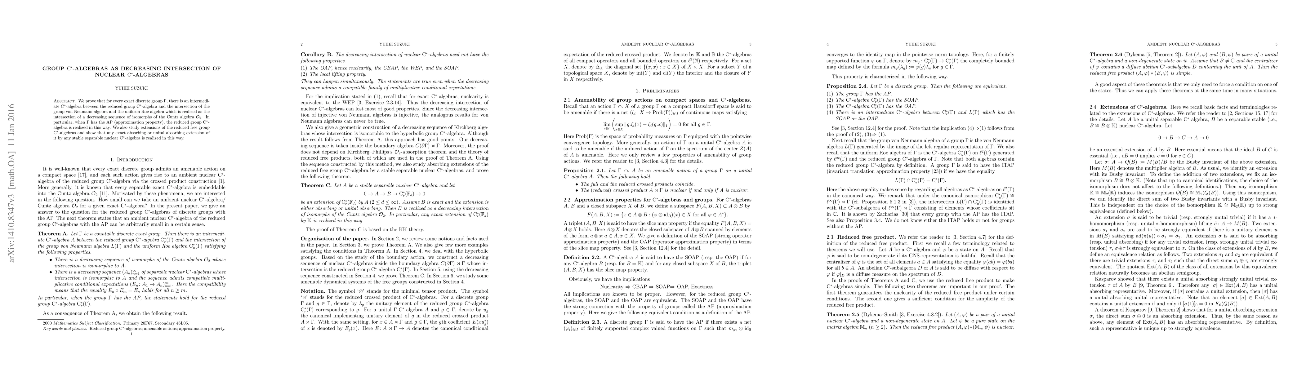 We prove that for every exact discrete group $\Gamma$, there is an intermediate C*-algebra between the reduced group C*-algebra and the intersection of the group von Neumann algebra and the uniform Roe algebra which is realized as the intersection of a decreasing sequence of isomorphs of the Cuntz algebra $\mathcal{O}_2$. In particular, when $\Gamma$ has the AP (approximation property), the reduced group C*-algebra is realized in this way. We also study extensions of the reduced free group C*-algebras and show that any exact absorbing or unital absorbing extension of it by any stable separable nuclear C*-algebra is realized in this way.