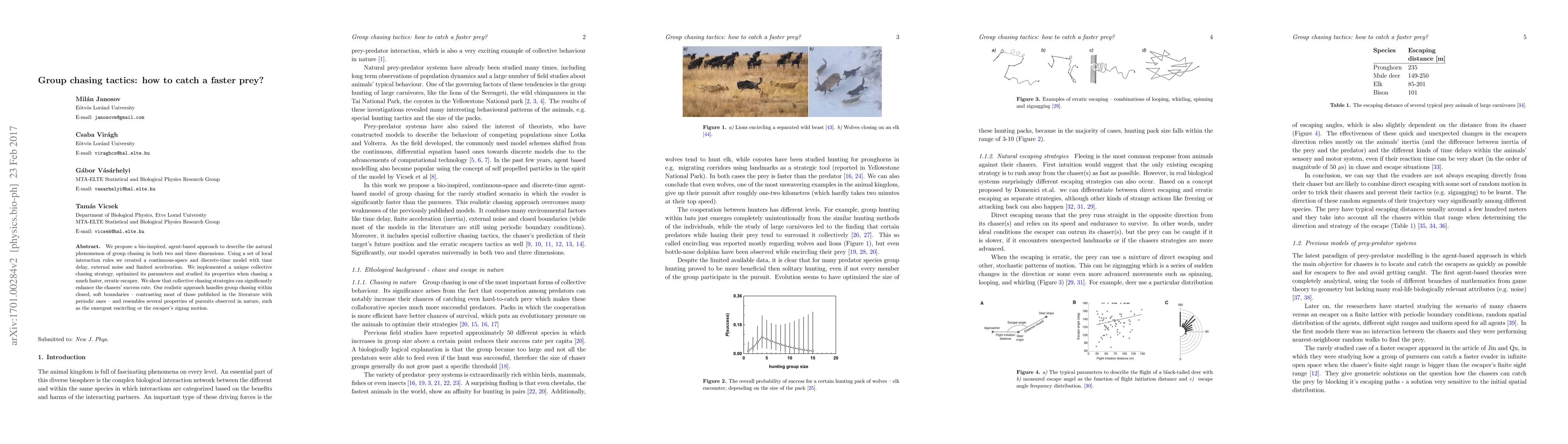 We propose a bio-inspired, agent-based approach to describe the natural phenomenon of group chasing in both two and three dimensions. Using a set of local interaction rules we created a continuous-space and discrete-time model with time delay, external noise and limited acceleration. We implemented a unique collective chasing strategy, optimized its parameters and studied its properties when chasing a much faster, erratic escaper. We show that collective chasing strategies can significantly enhance the chasers' success rate. Our realistic approach handles group chasing within closed, soft boundaries - contrasting most of those published in the literature with periodic ones -- and resembles several properties of pursuits observed in nature, such as the emergent encircling or the escaper's zigzag motion.