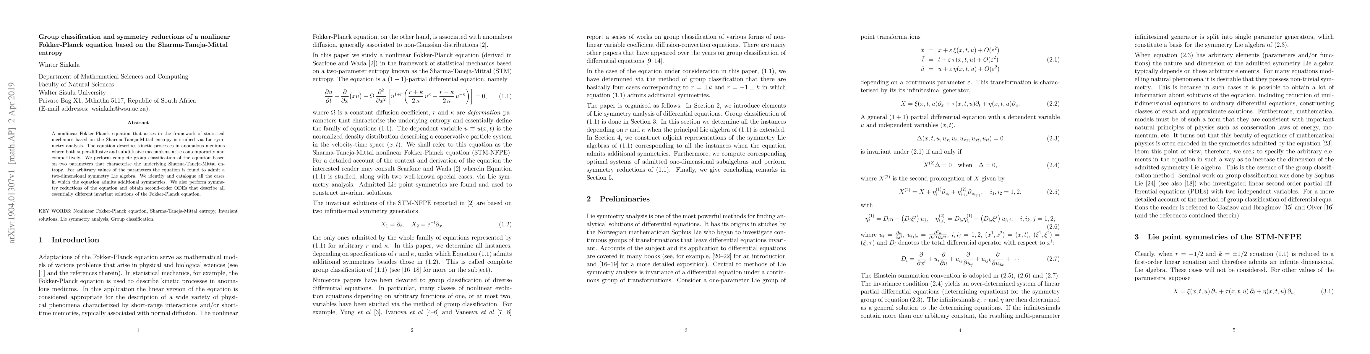 This paper conducts a Lie symmetry analysis of a nonlinear Fokker-Planck equation linked to Sharma-Taneja-Mittal entropy, classifying its symmetries and identifying additional reductions. It derives second-order ODEs representing invariant solutions for kinetic processes in anomalous mediums.