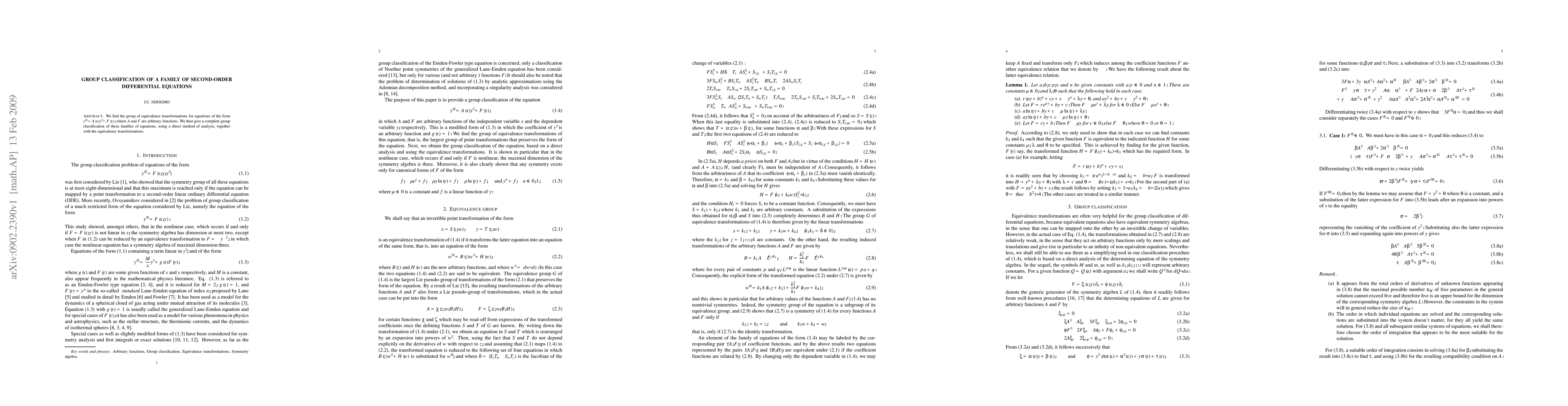 We find the group of equivalence transformations for equations of the form $y''= A(x)y' + F(y),$ where $A$ and $F$ are arbitrary functions. We then give a complete group classification of these families of equations, using a direct method of analysis, together with the equivalence transformations.