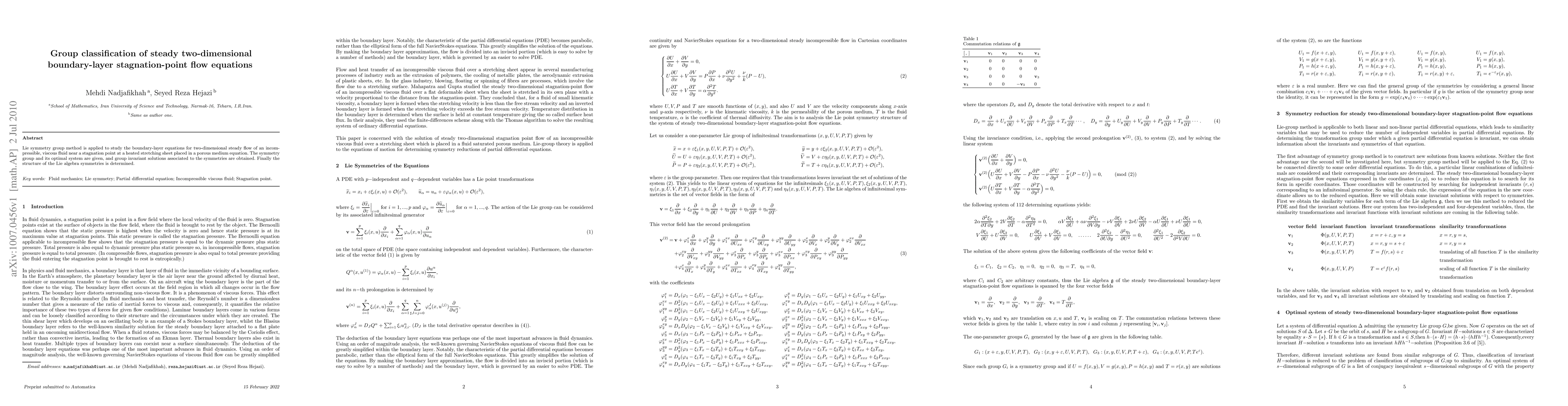 This paper applies the Lie symmetry group method to classify the boundary-layer equations for two-dimensional steady flow near a stagnation point on a heated, stretching sheet in a porous medium. It determines the symmetry group, optimal system, and group invariant solutions, and analyzes the structure of the Lie algebra symmetries.