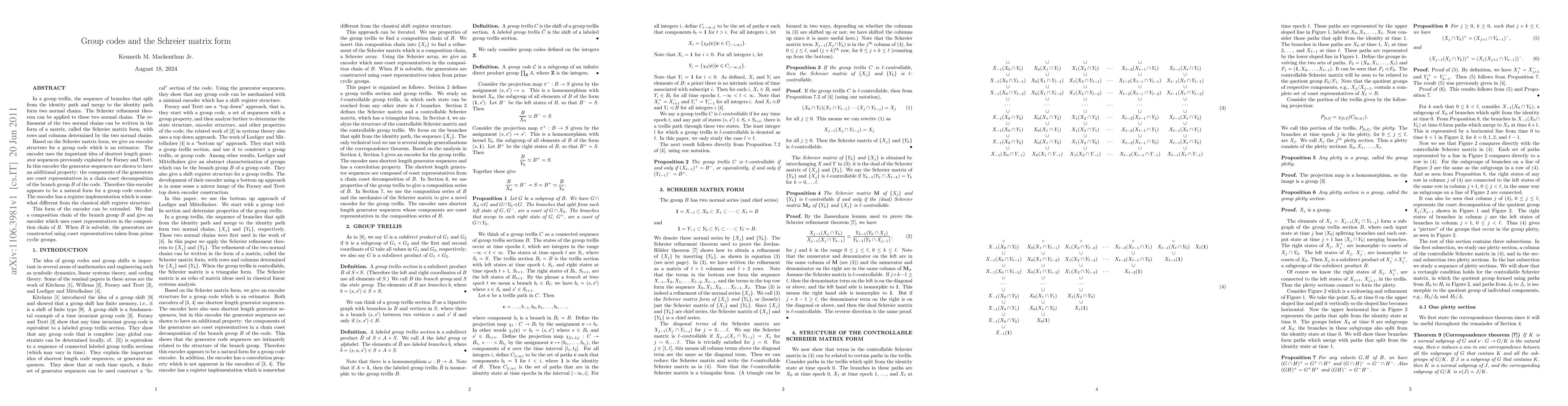In a group trellis, the sequence of branches that split from the identity path and merge to the identity path form two normal chains. The Schreier refinement theorem can be applied to these two normal chains. The refinement of the two normal chains can be written in the form of a matrix, called the Schreier matrix form, with rows and columns determined by the two normal chains. Based on the Schreier matrix form, we give an encoder structure for a group code which is an estimator. The encoder uses the important idea of shortest length generator sequences previously explained by Forney and Trott. In this encoder the generator sequences are shown to have an additional property: the components of the generators are coset representatives in a chain coset decomposition of the branch group B of the code. Therefore this encoder appears to be a natural form for a group code encoder. The encoder has a register implementation which is somewhat different from the classical shift register structure. This form of the encoder can be extended. We find a composition chain of the branch group B and give an encoder which uses coset representatives in the composition chain of B. When B is solvable, the generators are constructed using coset representatives taken from prime cyclic groups.