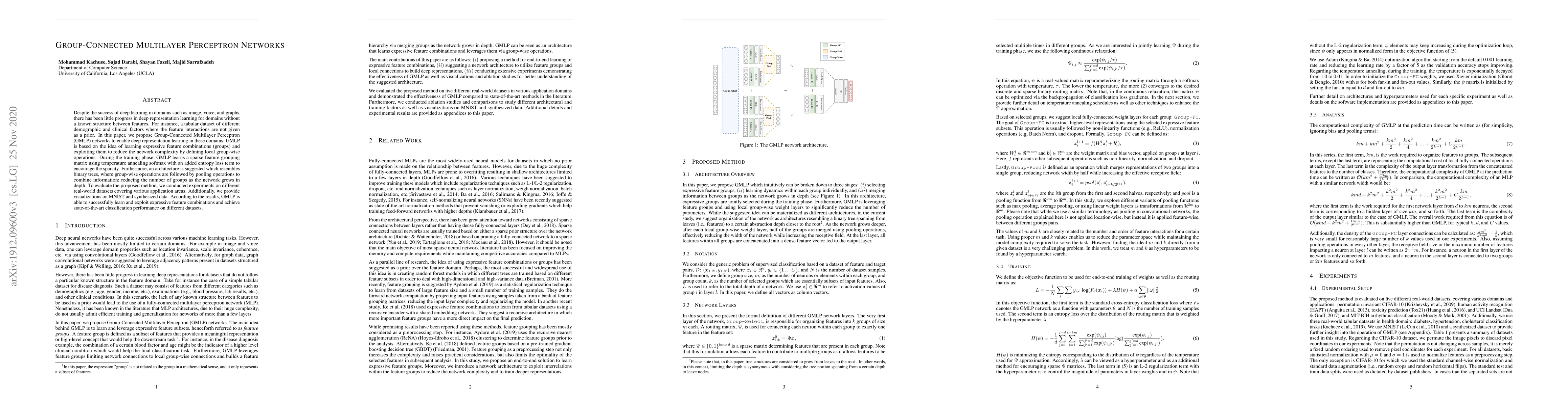 Researchers propose a new neural network architecture called Group-Connected Multilayer Perceptron (GMLP) to enable deep representation learning in unstructured domains, achieving state-of-the-art classification performance on various datasets.