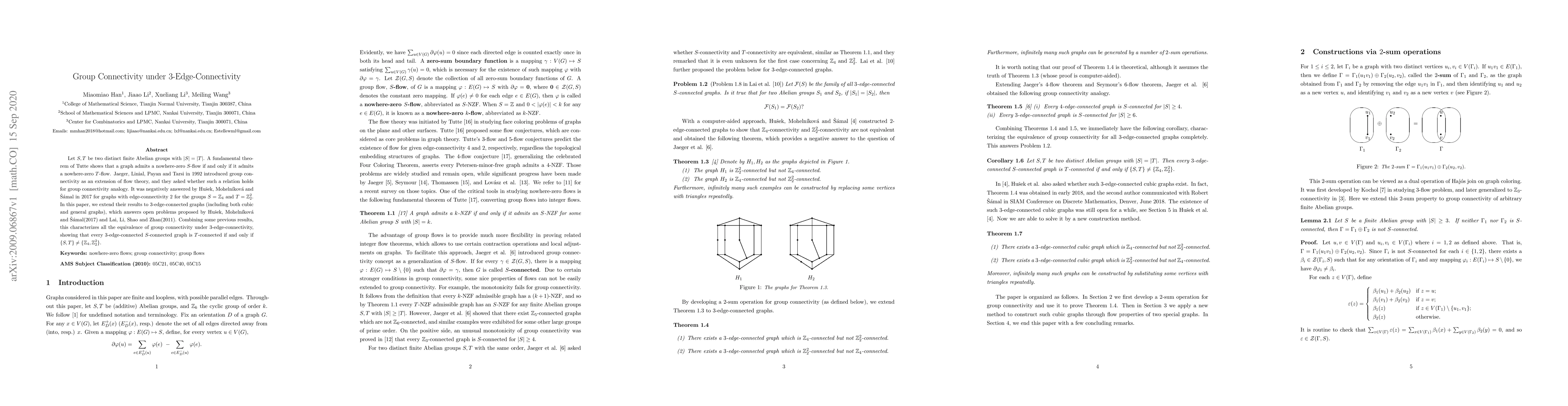 Let $S,T$ be two distinct finite Abelian groups with $|S|=|T|$. A fundamental theorem of Tutte shows that a graph admits a nowhere-zero $S$-flow if and only if it admits a nowhere-zero $T$-flow. Jaeger, Linial, Payan and Tarsi in 1992 introduced group connectivity as an extension of flow theory, and they asked whether such a relation holds for group connectivity analogy. It was negatively answered by Hu\v{s}ek, Moheln\'{i}kov\'{a} and \v{S}\'{a}mal in 2017 for graphs with edge-connectivity 2 for the groups $S=\mathbb{Z}_4$ and $T=\mathbb{Z}_2^2$. In this paper, we extend their results to $3$-edge-connected graphs (including both cubic and general graphs), which answers open problems proposed by Hu\v{s}ek, Moheln\'{i}kov\'{a} and \v{S}\'{a}mal(2017) and Lai, Li, Shao and Zhan(2011). Combining some previous results, this characterizes all the equivalence of group connectivity under $3$-edge-connectivity, showing that every $3$-edge-connected $S$-connected graph is $T$-connected if and only if $\{S,T\}\neq \{\mathbb{Z}_4,\mathbb{Z}_2^2\}$.