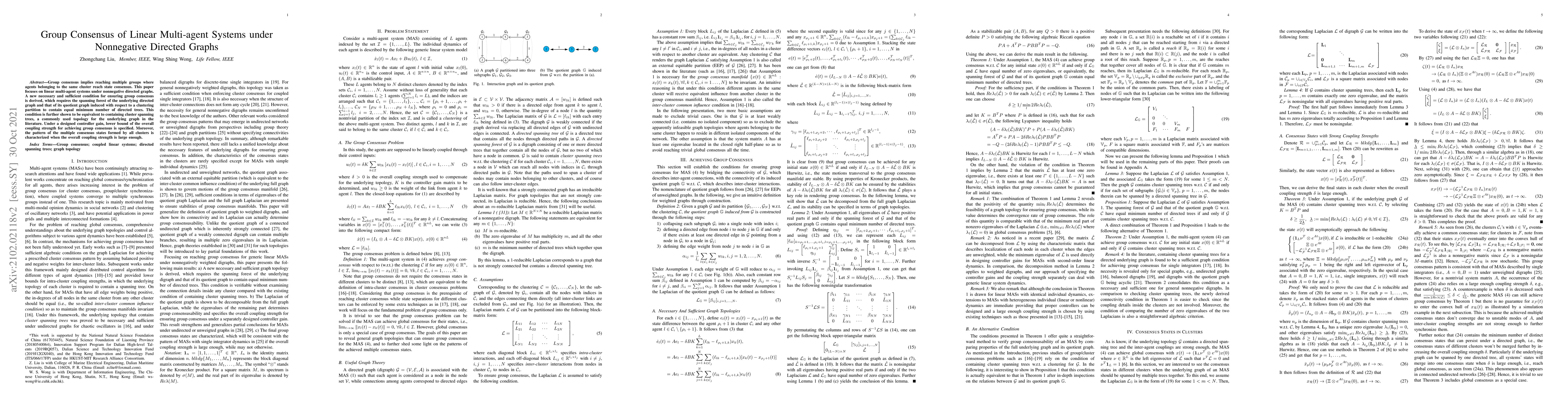 This paper derives a new necessary and sufficient condition for group consensus in linear multi-agent systems under nonnegative directed graphs, showing it requires equal minimum directed trees in the spanning forest of the graph and its quotient graph. It also specifies a lower bound for the overall coupling strength to achieve group consensus and characterizes the consensus state pattern under strong coupling.
