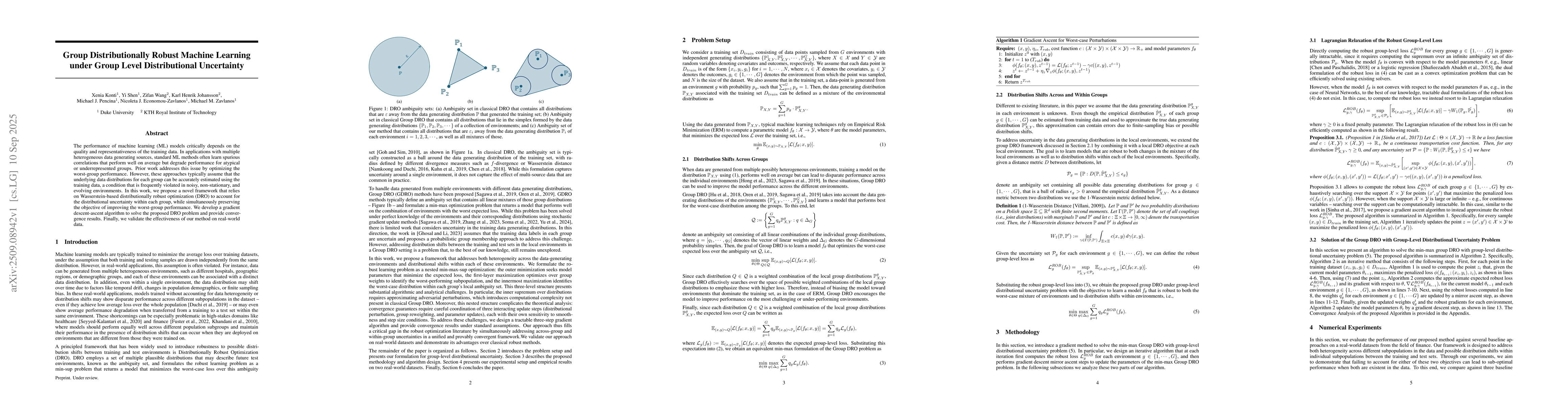 The performance of machine learning (ML) models critically depends on the quality and representativeness of the training data. In applications with multiple heterogeneous data generating sources, standard ML methods often learn spurious correlations that perform well on average but degrade performance for atypical or underrepresented groups. Prior work addresses this issue by optimizing the worst-group performance. However, these approaches typically assume that the underlying data distributions for each group can be accurately estimated using the training data, a condition that is frequently violated in noisy, non-stationary, and evolving environments. In this work, we propose a novel framework that relies on Wasserstein-based distributionally robust optimization (DRO) to account for the distributional uncertainty within each group, while simultaneously preserving the objective of improving the worst-group performance. We develop a gradient descent-ascent algorithm to solve the proposed DRO problem and provide convergence results. Finally, we validate the effectiveness of our method on real-world data.