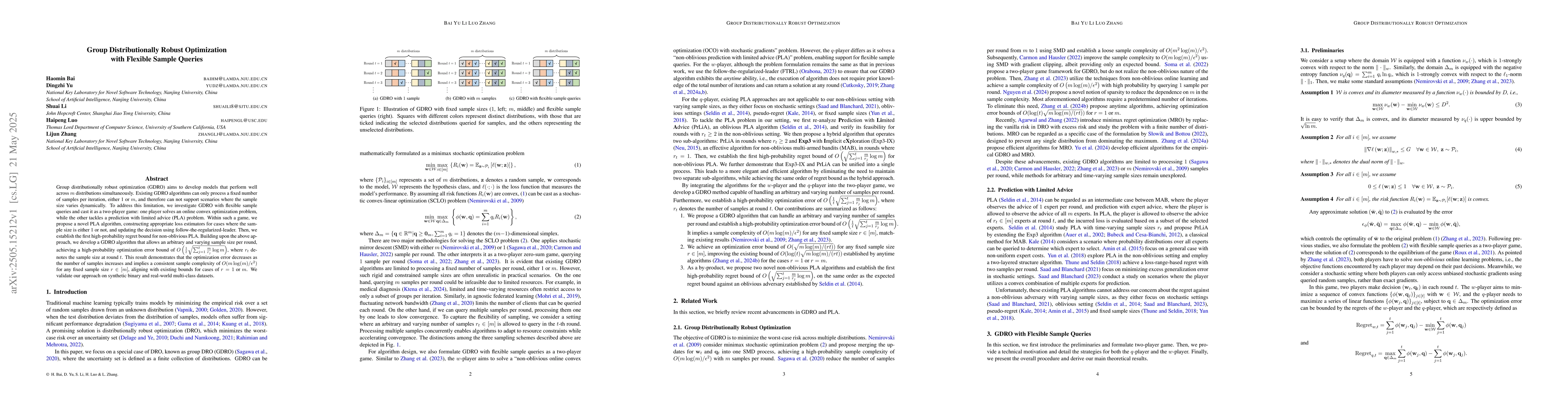 This research paper proposes a novel approach to group distributionally robust optimization with flexible sample queries, enabling efficient processing of varying sample sizes and achieving high-probability regret bounds for non-oblivious prediction with limited advice problems.