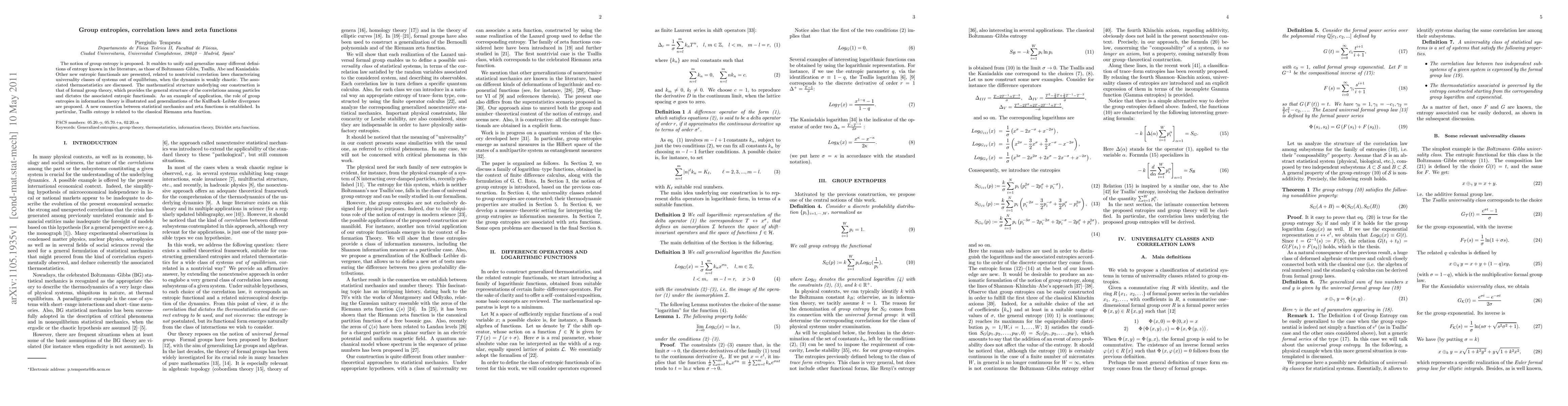 This paper introduces group entropy to unify various entropy definitions, including Boltzmann-Gibbs, Tsallis, Abe, and Kaniadakis, and explores new entropic functionals linked to weakly chaotic dynamics. It establishes a connection between statistical mechanics and zeta functions, particularly relating Tsallis entropy to the Riemann zeta function.