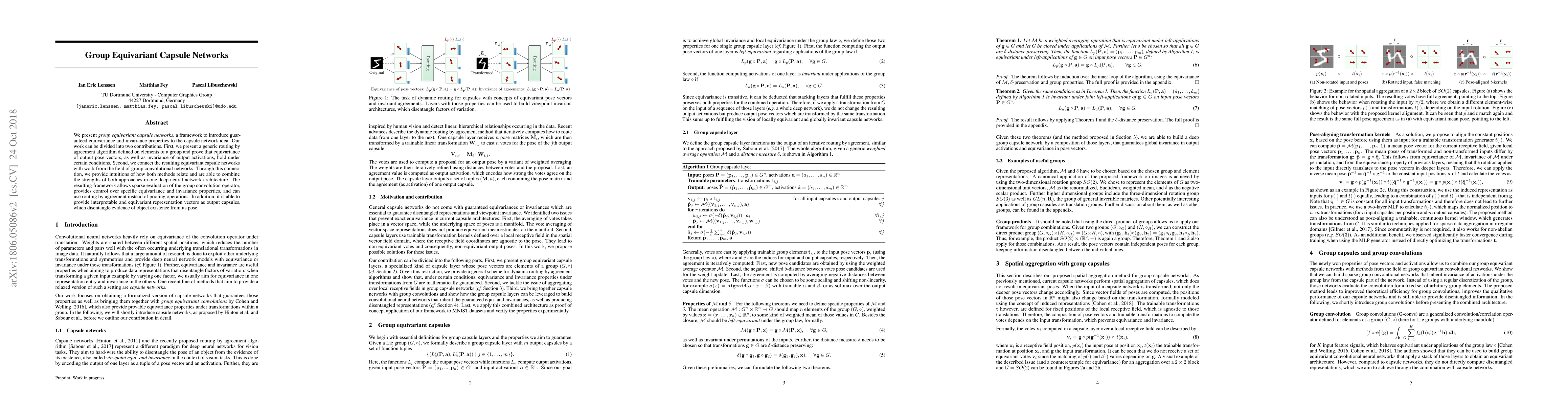The paper introduces Group Equivariant Capsule Networks, a framework that guarantees equivariance and invariance properties by defining a routing by agreement algorithm on group elements. It connects these networks with group convolutional networks, allowing for sparse evaluation of group convolution operators, control over specific equivariance and invariance properties, and the use of routing by agreement instead of pooling operations.