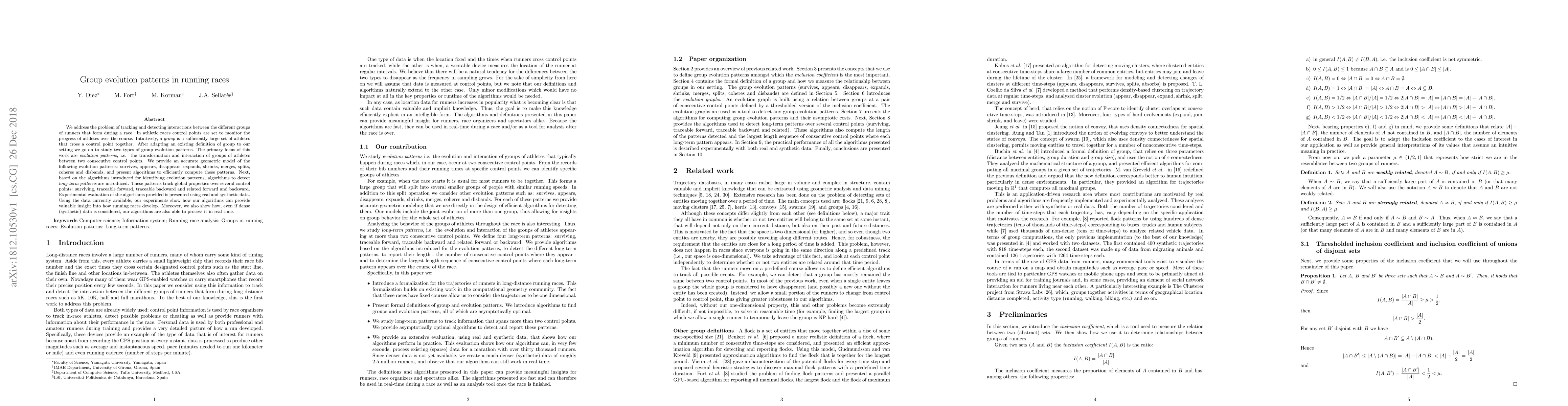 This paper develops algorithms to track and analyze the evolution patterns of groups of runners in races, identifying transformations and interactions between groups at consecutive control points. It presents a geometric model for patterns like merges, splits, and coherence, and evaluates the algorithms using real and synthetic data, demonstrating real-time processing capability.