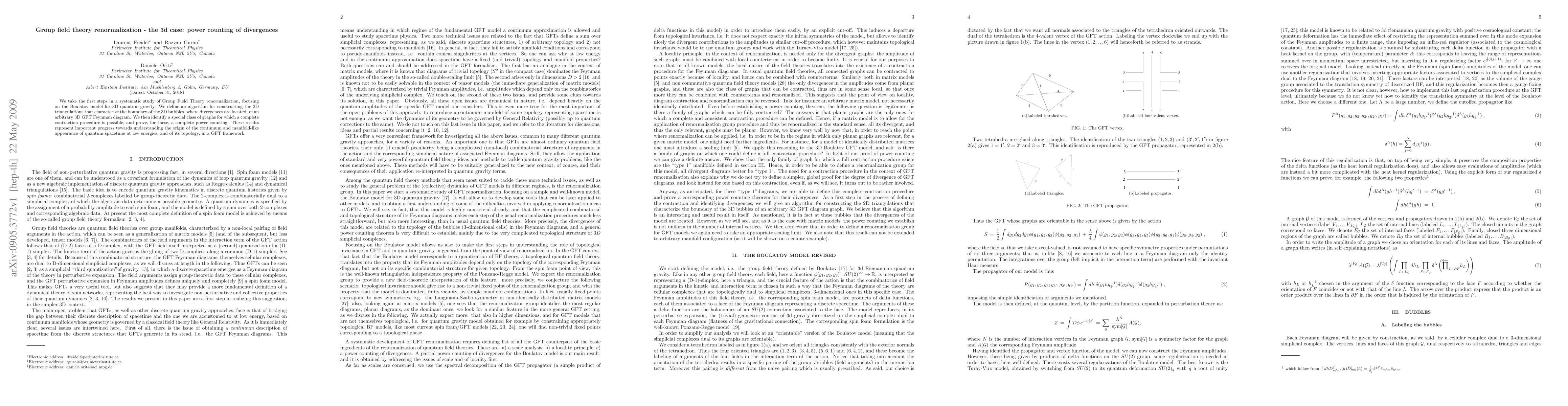 We take the first steps in a systematic study of Group Field Theory renormalization, focusing on the Boulatov model for 3D quantum gravity. We define an algorithm for constructing the 2D triangulations that characterize the boundary of the 3D bubbles, where divergences are located, of an arbitrary 3D GFT Feynman diagram. We then identify a special class of graphs for which a complete contraction procedure is possible, and prove, for these, a complete power counting. These results represent important progress towards understanding the origin of the continuum and manifold-like appearance of quantum spacetime at low energies, and of its topology, in a GFT framework.