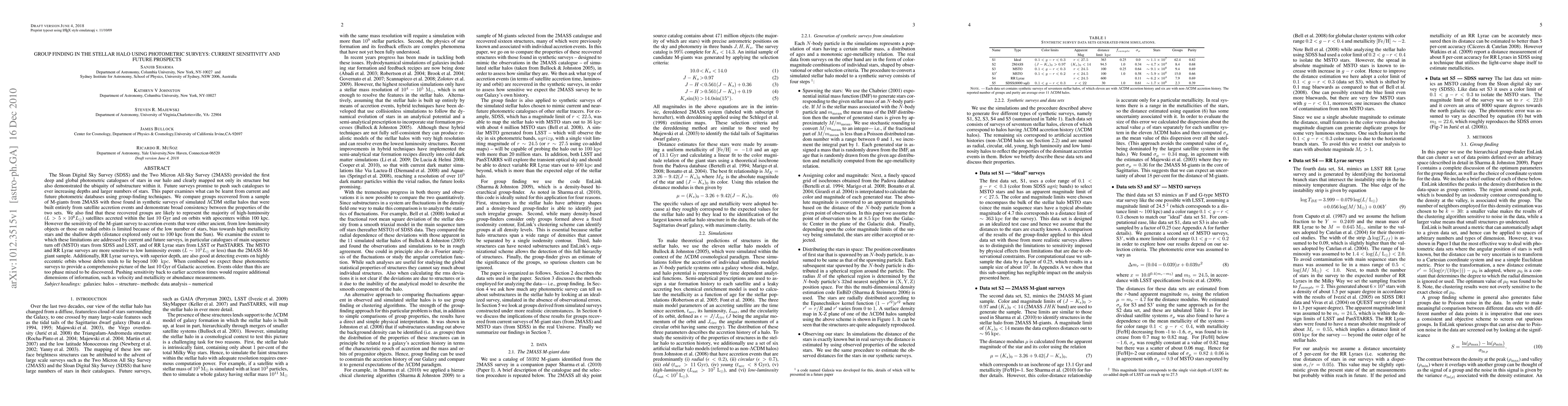 The ubiquity of substructure in the stellar halo has already been demonstrated by the SDSS and 2MASS and future surveys promise to explore the halo in ever more detail. This paper examines what can be learnt from current and future photometric-databases using group-finding techniques. We compare groups recovered from a sample of M-giants from 2MASS with those found in synthetic surveys of simulated $\Lambda$CDM stellar halos and demonstrate broad consistency. We also find that these recovered groups are likely to represent the majority of high-luminosity ($\log(L/L_{Sun})>6.67$) satellites accreted within the last 10 Gyr and on orbits with apocenters within 100 kpc. However the sensitivity of the M-giant survey to accretion events that were either ancient, from low-luminosity objects or those on radial orbits is limited because of the low number of stars, bias towards high-metallicity stars and the shallow depth. We examine the extent to which these limitations are addressed by current and future surveys, in particular catalogues of main-sequence turn-off (MSTO) stars from SDSS and LSST, and of RR-Lyrae stars from LSST or PanSTARRS. The MSTO surveys are more sensitive to low-luminosity events ($\log(L/L_{Sun}~5$ or less) than the 2MASS M-giant sample, while the RR-Lyrae surveys, with superior depth, are good at detecting events on highly eccentric orbits. When combined we expect these photometric surveys to provide a comprehensive picture of the last 10 Gyr of Galactic accretion. Events older than this are too phase mixed to be discovered and would require additional information such as velocity and chemical abundance.