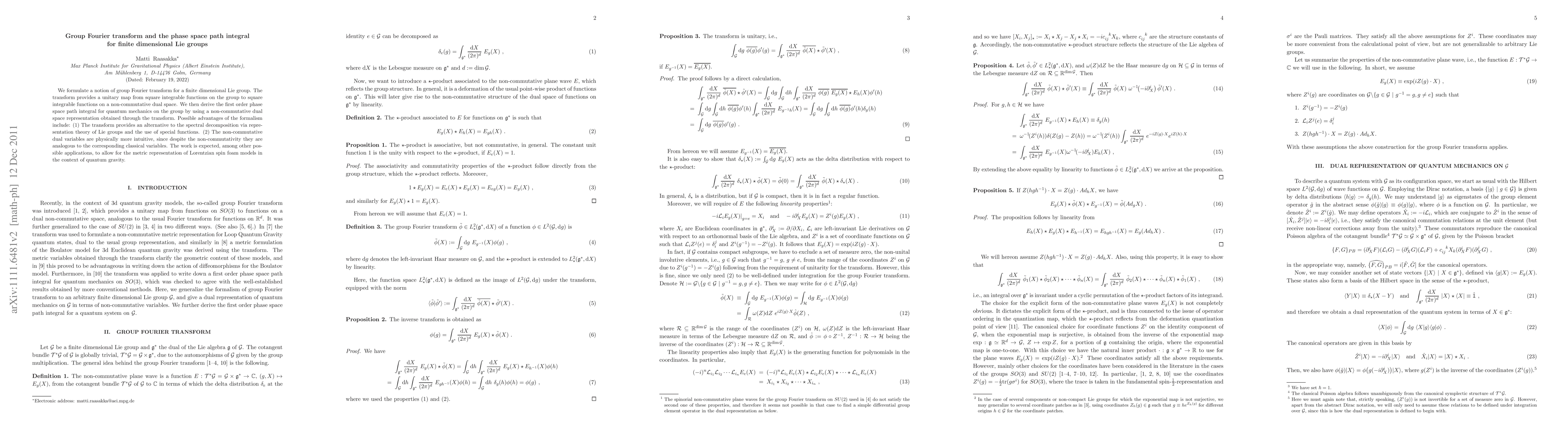 This paper introduces a group Fourier transform for finite-dimensional Lie groups, providing a unitary map between square integrable functions on the group and its non-commutative dual space. It also derives a first-order phase space path integral for quantum mechanics on these groups, potentially offering an intuitive alternative to traditional representation theory methods.