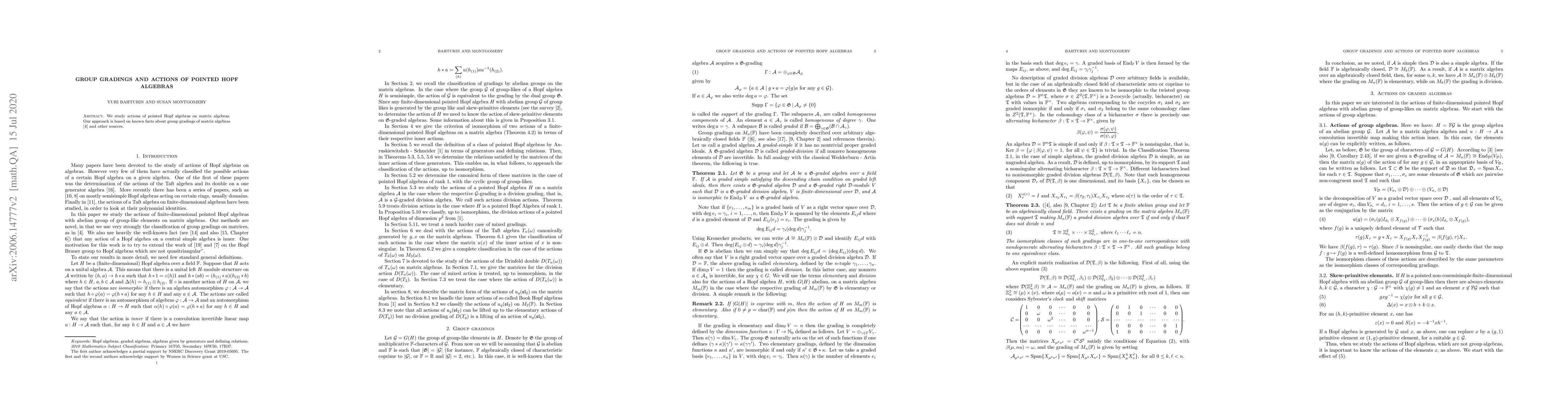 This paper investigates how pointed Hopf algebras act on matrix algebras, employing insights from group gradings to understand these actions. The focus is on the algebraic structures and relationships involved in these interactions.