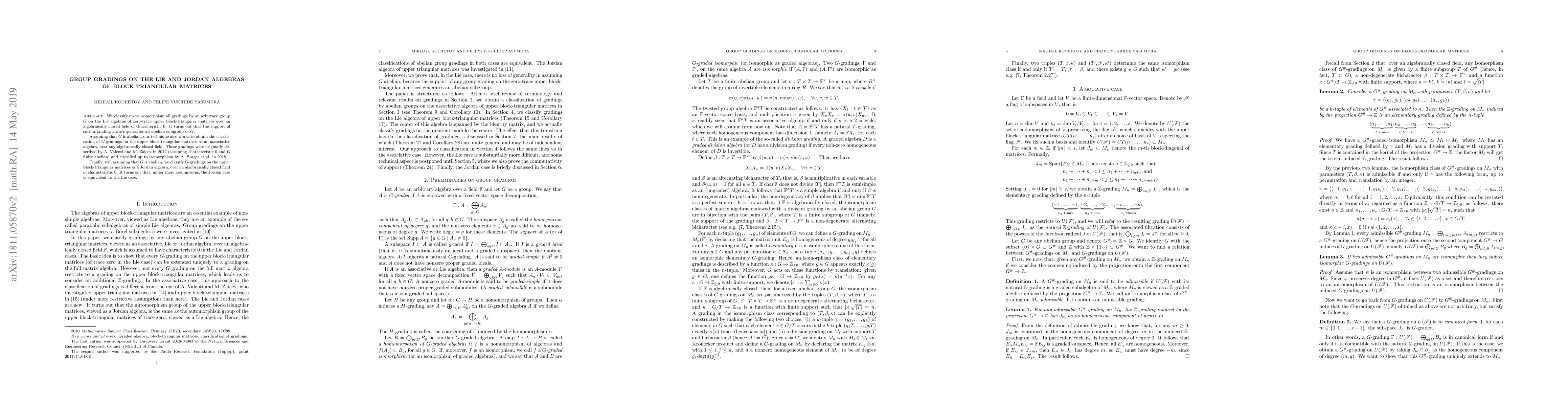 We classify up to isomorphism all gradings by an arbitrary group $G$ on the Lie algebras of zero-trace upper block-triangular matrices over an algebraically closed field of characteristic $0$. It turns out that the support of such a grading always generates an abelian subgroup of $G$. Assuming that $G$ is abelian, our technique also works to obtain the classification of $G$-gradings on the upper block-triangular matrices as an associative algebra, over any algebraically closed field. These gradings were originally described by A. Valenti and M. Zaicev in 2012 (assuming characteristic $0$ and $G$ finite abelian) and classified up to isomorphism by A. Borges et al. in 2018. Finally, still assuming that $G$ is abelian, we classify $G$-gradings on the upper block-triangular matrices as a Jordan algebra, over an algebraically closed field of characteristic $0$. It turns out that, under these assumptions, the Jordan case is equivalent to the Lie case.