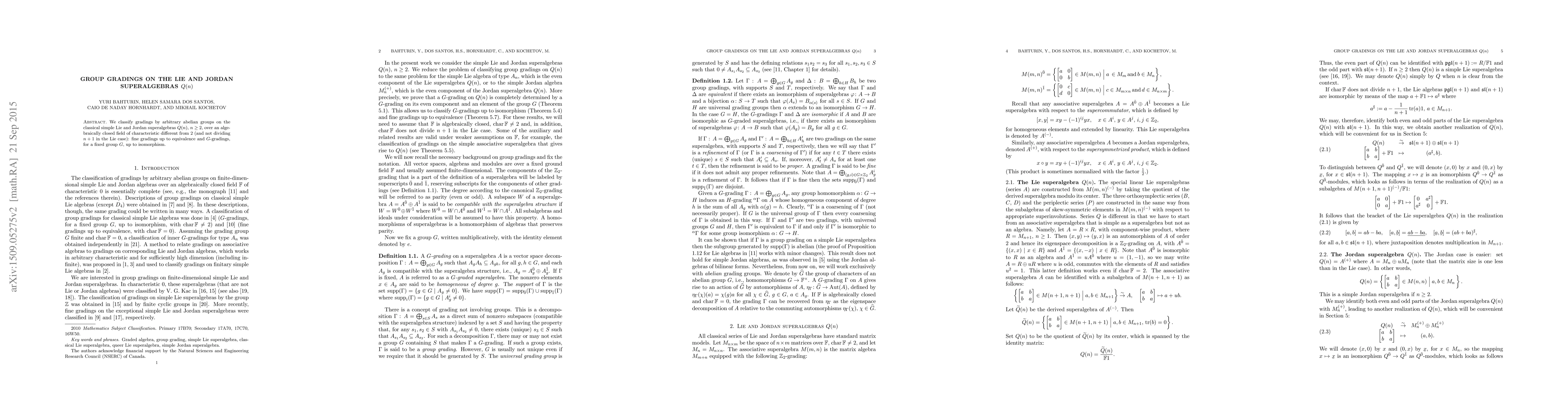 This paper classifies abelian group gradings on the classical simple Lie and Jordan superalgebras $Q(n)$, $n \geq 2$, focusing on fine gradings and $G$-gradings up to equivalence and isomorphism, respectively. The analysis is performed over an algebraically closed field with specific characteristic conditions.