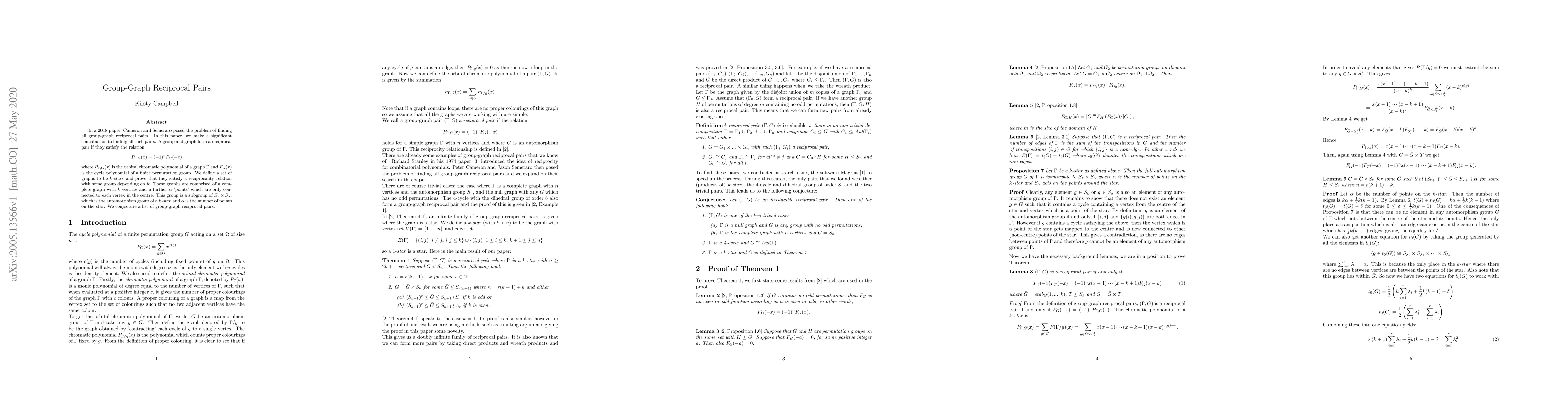 This paper advances the study of group-graph reciprocal pairs by identifying and proving a reciprocality relation for a set of graphs called $k$-stars, which consist of a complete graph with $k$ vertices and additional points connected only to the central vertices. The authors conjecture a comprehensive list of such reciprocal pairs.