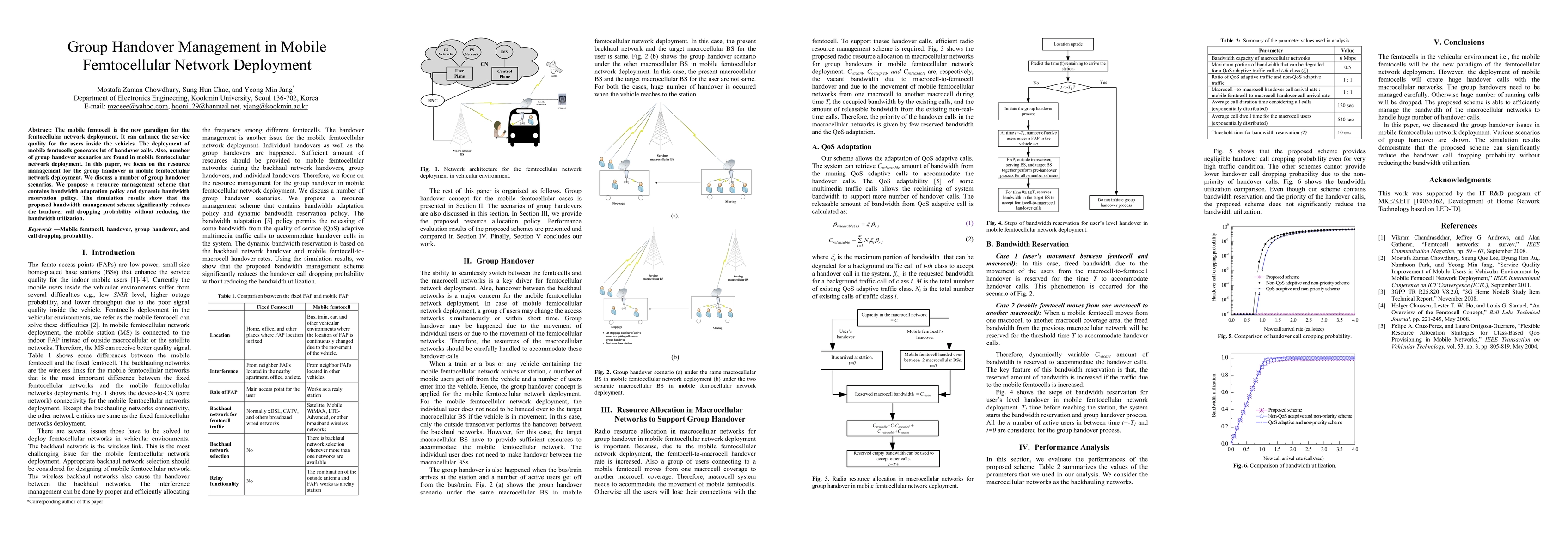 This paper explores resource management for group handovers in mobile femtocellular networks, proposing a scheme with bandwidth adaptation and dynamic reservation policies. Simulation results show that the approach effectively reduces handover call drops while maintaining bandwidth utilization.