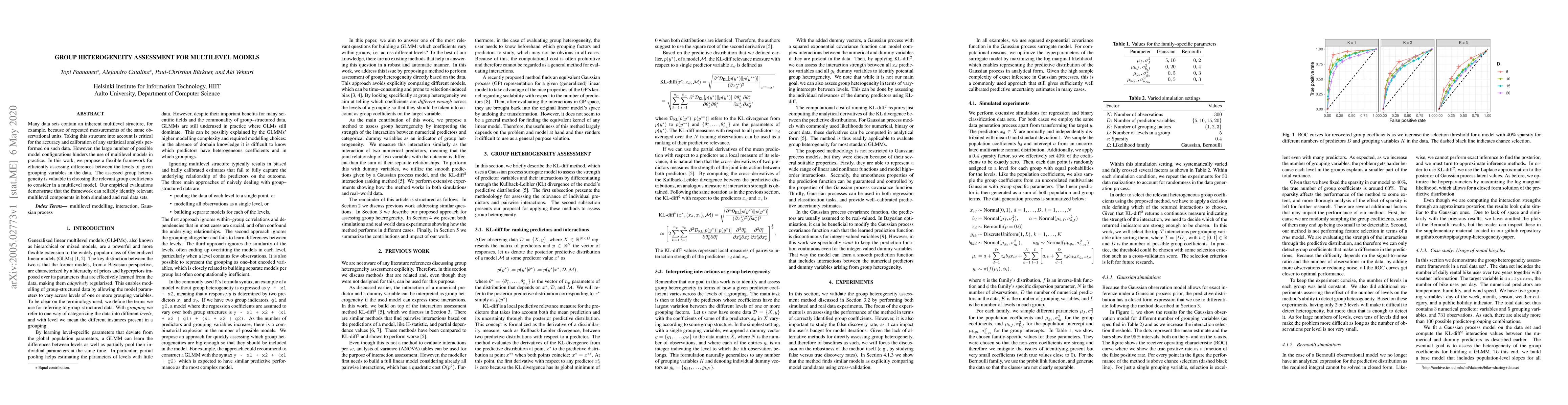 Many data sets contain an inherent multilevel structure, for example, because of repeated measurements of the same observational units. Taking this structure into account is critical for the accuracy and calibration of any statistical analysis performed on such data. However, the large number of possible model configurations hinders the use of multilevel models in practice. In this work, we propose a flexible framework for efficiently assessing differences between the levels of given grouping variables in the data. The assessed group heterogeneity is valuable in choosing the relevant group coefficients to consider in a multilevel model. Our empirical evaluations demonstrate that the framework can reliably identify relevant multilevel components in both simulated and real data sets.