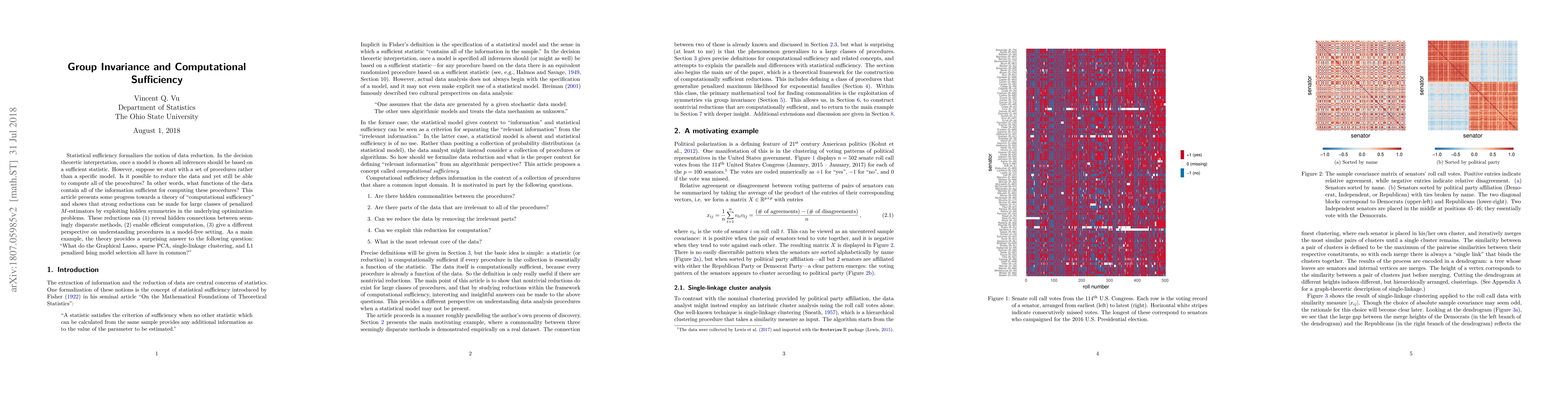 Statistical sufficiency formalizes the notion of data reduction. In the decision theoretic interpretation, once a model is chosen all inferences should be based on a sufficient statistic. However, suppose we start with a set of procedures rather than a specific model. Is it possible to reduce the data and yet still be able to compute all of the procedures? In other words, what functions of the data contain all of the information sufficient for computing these procedures? This article presents some progress towards a theory of "computational sufficiency" and shows that strong reductions can be made for large classes of penalized $M$-estimators by exploiting hidden symmetries in the underlying optimization problems. These reductions can (1) reveal hidden connections between seemingly disparate methods, (2) enable efficient computation, (3) give a different perspective on understanding procedures in a model-free setting. As a main example, the theory provides a surprising answer to the following question: "What do the Graphical Lasso, sparse PCA, single-linkage clustering, and L1 penalized Ising model selection all have in common?"