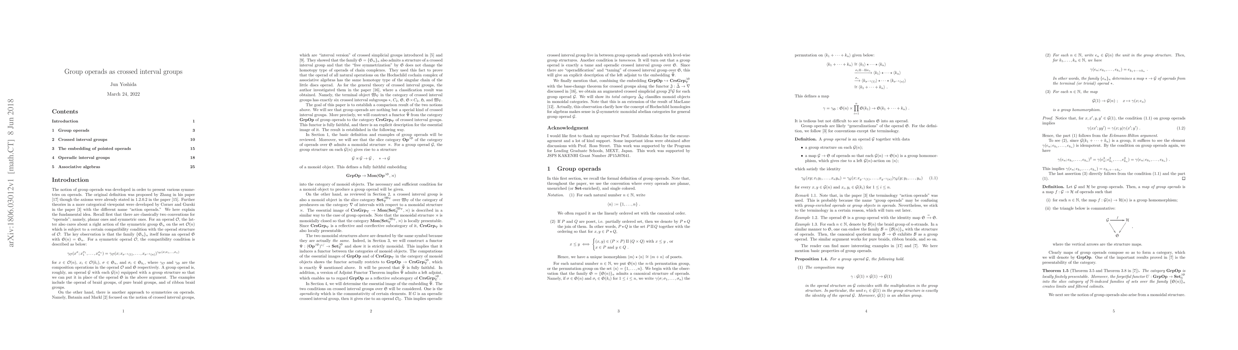 This paper establishes a fully faithful embedding of group operads into crossed interval groups through a monoidal functor, proposing conditions for crossed interval groups to reflect group operads and discussing monoid objects and Hochschild homologies in this context.