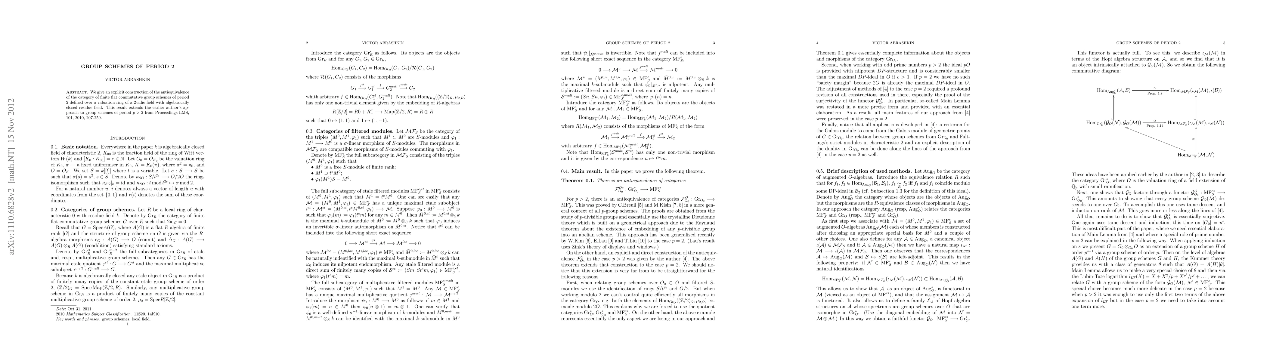 Researchers provide an explicit construction of a category of finite flat commutative group schemes over a 2-adic field with algebraically closed residue field, showing antiequivalence for period 2 schemes, extending earlier work on higher-period schemes.