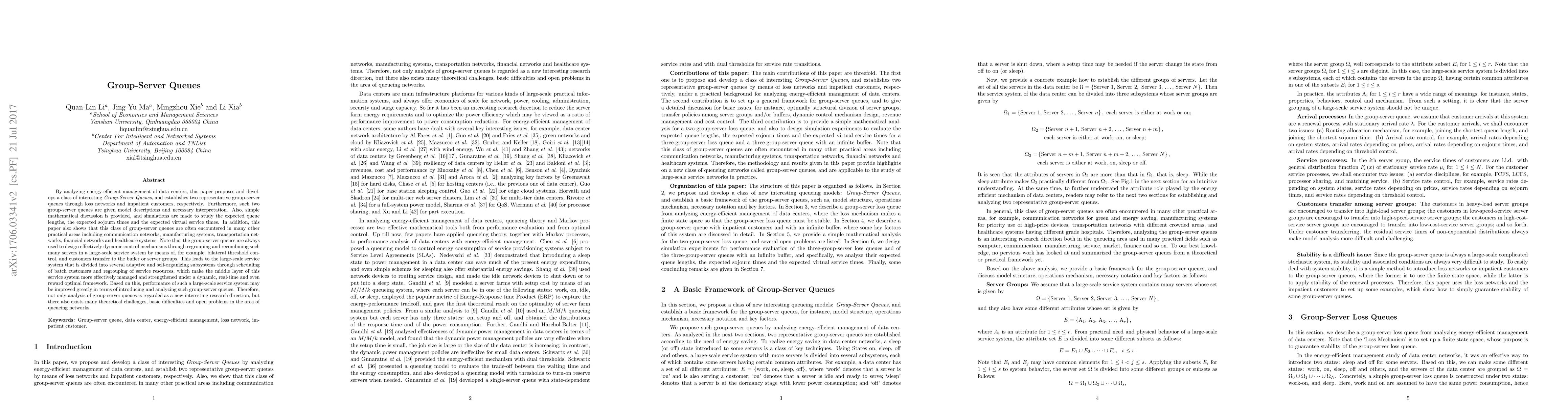 The paper introduces Group-Server Queues and their application in energy-efficient data center management, providing a foundation for further research in this area.
