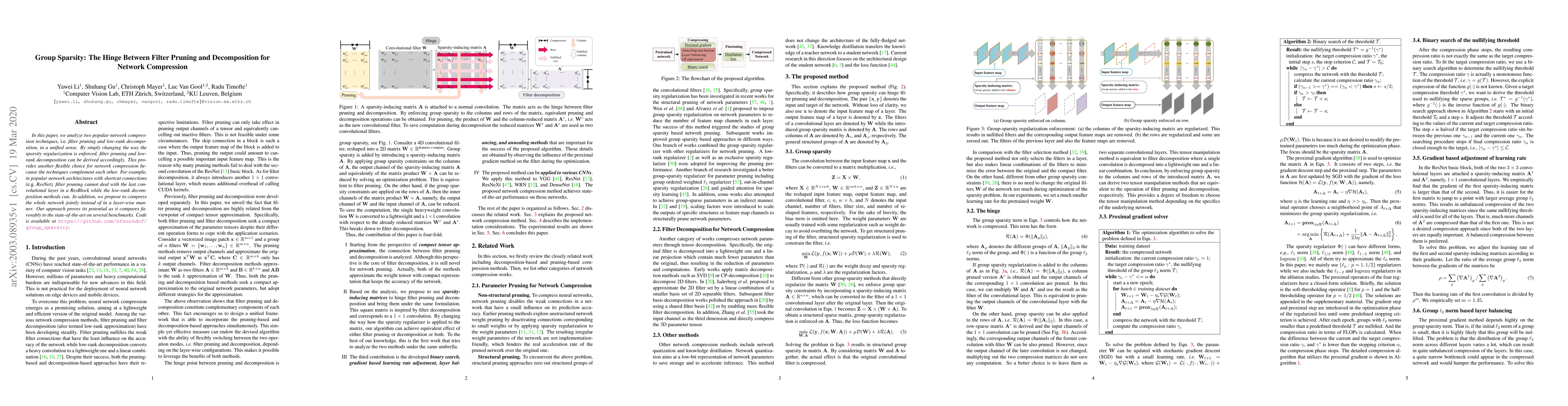 In this paper, we analyze two popular network compression techniques, i.e. filter pruning and low-rank decomposition, in a unified sense. By simply changing the way the sparsity regularization is enforced, filter pruning and low-rank decomposition can be derived accordingly. This provides another flexible choice for network compression because the techniques complement each other. For example, in popular network architectures with shortcut connections (e.g. ResNet), filter pruning cannot deal with the last convolutional layer in a ResBlock while the low-rank decomposition methods can. In addition, we propose to compress the whole network jointly instead of in a layer-wise manner. Our approach proves its potential as it compares favorably to the state-of-the-art on several benchmarks.