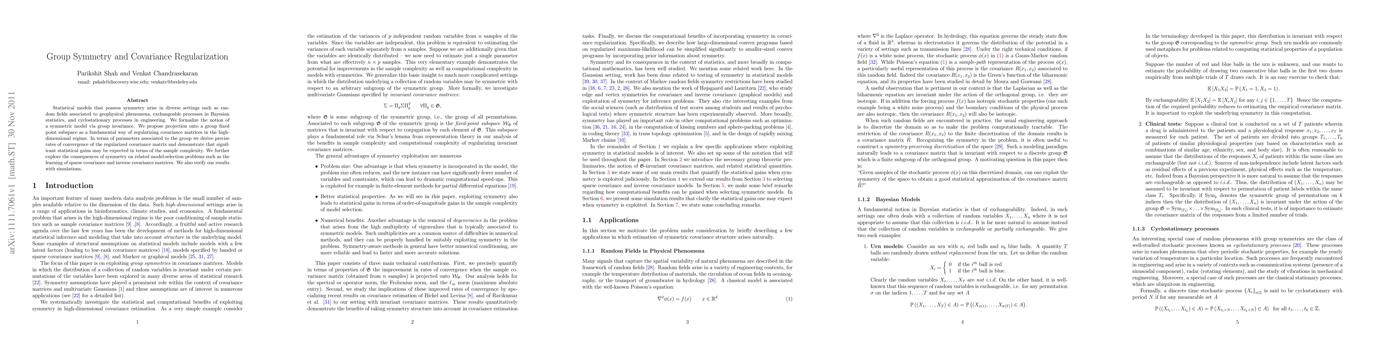 A statistical model's symmetry is used to regularize covariance matrices in high-dimensional data, leading to improved convergence rates and potential gains in sample complexity. This approach also sheds light on sparse covariance and inverse covariance matrix learning.