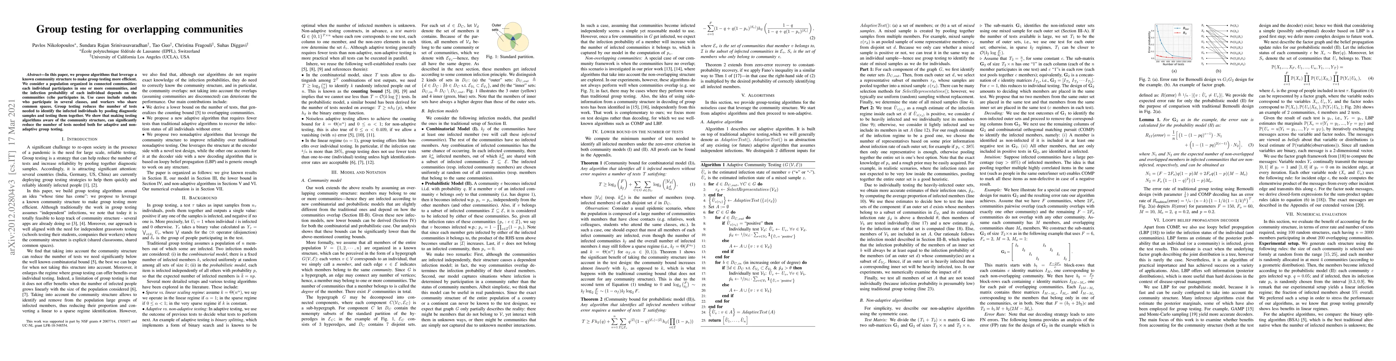 This paper proposes algorithms that utilize known community structures to enhance group testing efficiency, particularly for populations organized in overlapping communities. By leveraging community knowledge, the algorithms significantly reduce the number of tests required to identify infected individuals, applicable to scenarios like students in multiple classes or workers in shared spaces.