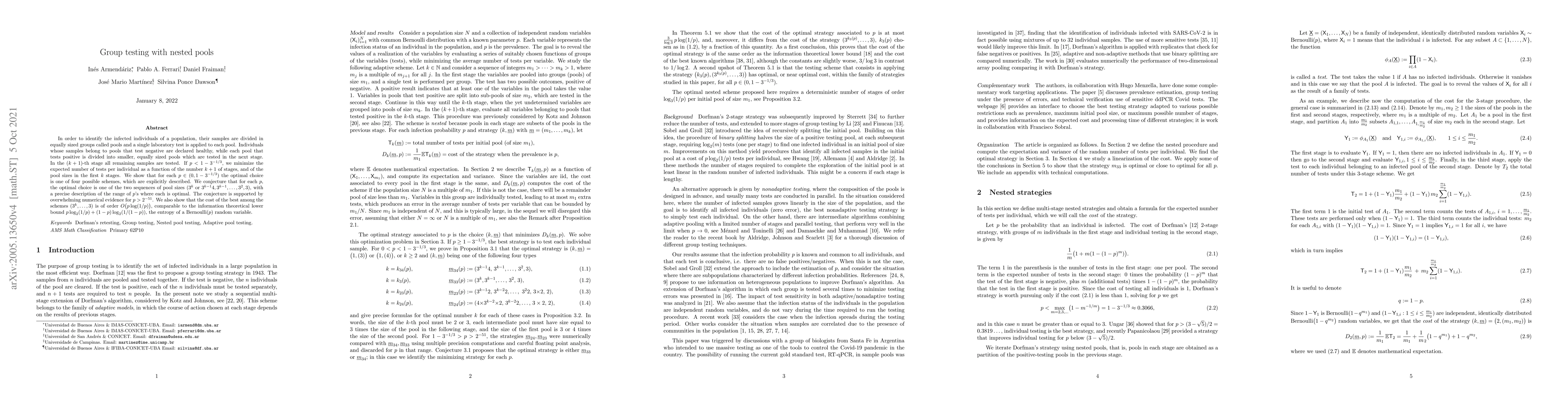 Researchers found that an optimal strategy for group testing with nested pools involves dividing samples into specific pool sizes to minimize the expected number of tests per individual, with a cost comparable to the information theoretical lower bound.