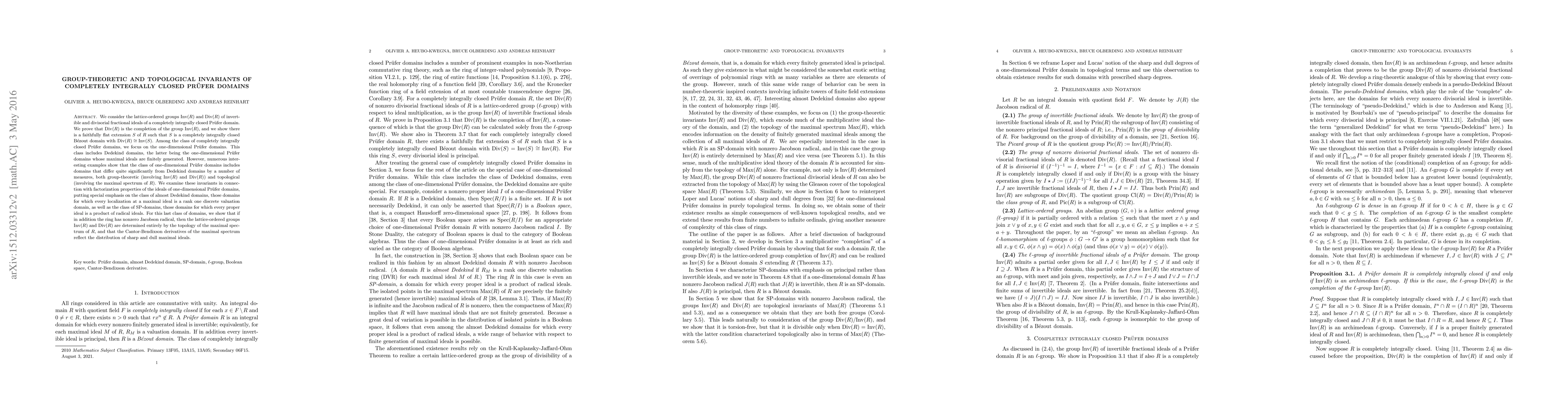 This paper explores group-theoretic and topological invariants of completely integrally closed Pr\"ufer domains, focusing on the lattice-ordered groups of invertible and divisorial fractional ideals. It establishes that the divisorial group is the completion of the invertible group and identifies a faithfully flat extension yielding a completely integrally closed B\'ezout domain. Special attention is given to one-dimensional Pr\"ufer domains, especially almost Dedekind and SP-domains, showing that their lattice-ordered groups are determined by the topology of their maximal spectrum.