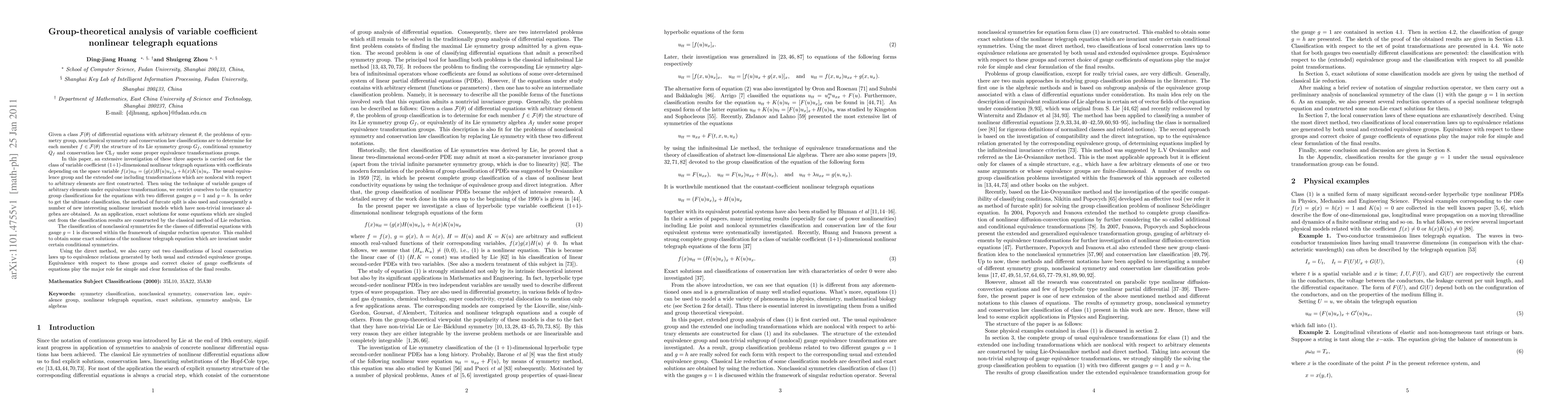 This paper conducts a group-theoretical analysis of variable coefficient nonlinear telegraph equations, classifying their symmetry groups, nonclassical symmetries, and conservation laws. It explores the structure of Lie symmetry groups and constructs equivalence transformations, ultimately deriving new nonlinear invariant models and exact solutions via classical Lie reduction.