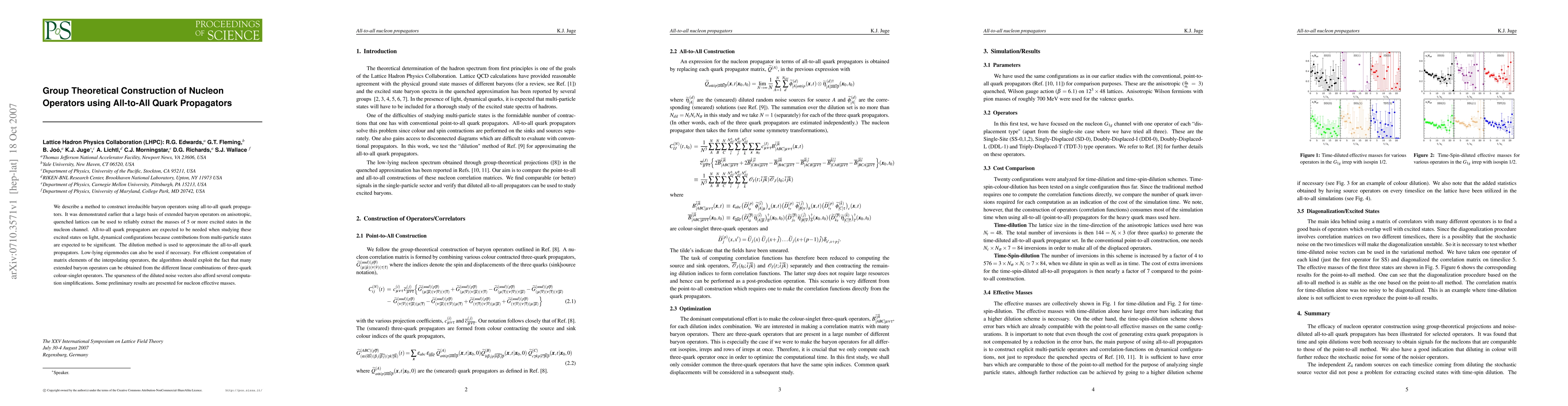 We describe a method to construct irreducible baryon operators using all-to-all quark propagators. It was demonstrated earlier that a large basis of extended baryon operators on anisotropic, quenched lattices can be used to reliably extract the masses of 5 or more excited states in the nucleon channel. All-to-all quark propagators are expected to be needed when studying these excited states on light, dynamical configurations because contributions from multi-particle states are expected to be significant. The dilution method is used to approximate the all-to-all quark propagators. Low-lying eigenmodes can also be used if necessary. For efficient computation of matrix elements of the interpolating operators, the algorithms should exploit the fact that many extended baryon operators can be obtained from the different linear combinations of three-quark colour-singlet operators. The sparseness of the diluted noise vectors also afford several computation simplifications. Some preliminary results are presented for nucleon effective masses.