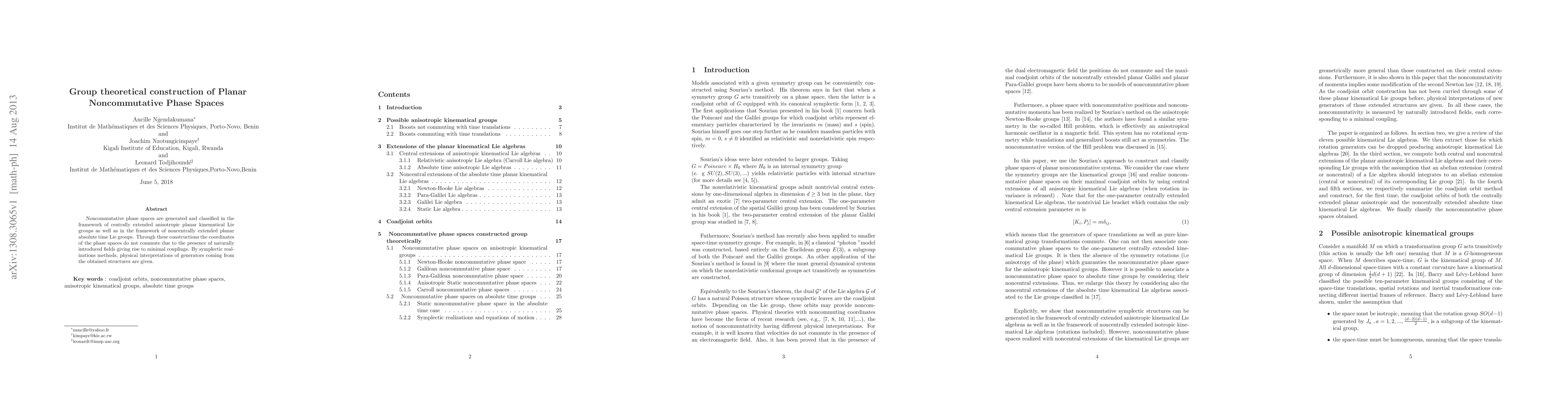 Noncommutative phase spaces are generated and classified in the framework of centrally extended anisotropic planar kinematical Lie groups as well as in the framework of noncentrally extended planar absolute time Lie groups. Through these constructions the coordinates of the phase spaces do not commute due to the presence of naturally introduced fields giving rise to minimal couplings. By symplectic realizations methods, physical interpretations of generators coming from the obtained structures are given.