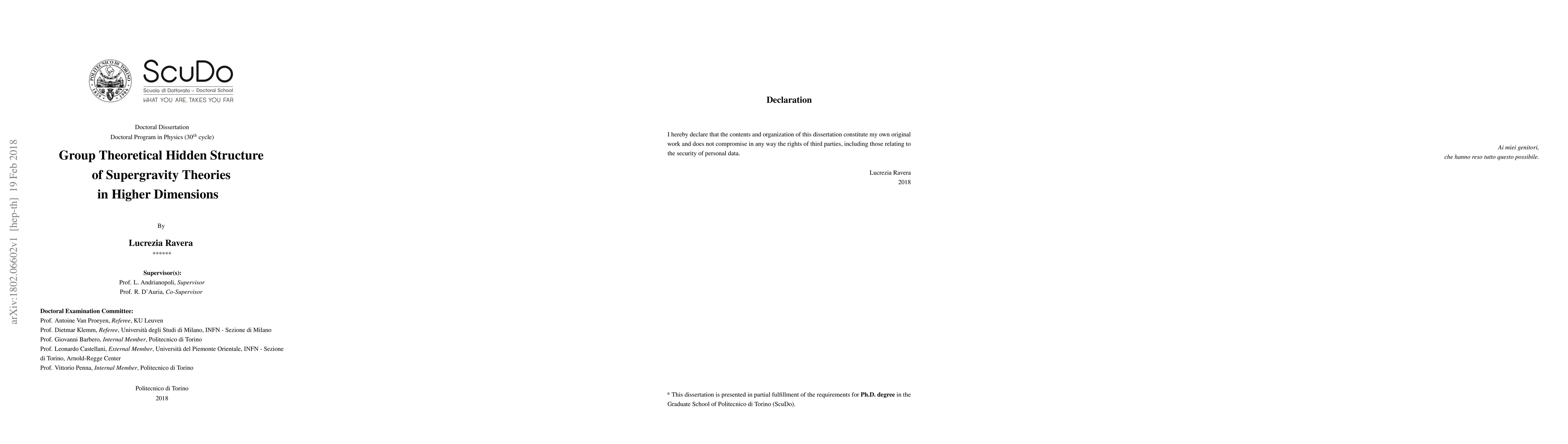The purpose of my PhD thesis is to investigate different group theoretical and geometrical aspects of supergravity theories. To this aim, several research topics are explored: On one side, the construction of supergravity models in diverse space-time dimensions, including the study of boundary contributions, and the disclosure of the hidden gauge structure of these theories; on the other side, the analysis of the algebraic links among different superalgebras related to supergravity theories. In the first three chapters, we give a general introduction and furnish the theoretical background necessary for a clearer understanding of the thesis. We then move to the original results of my PhD research activity: We start from the development of the so called $AdS$-Lorentz supergravity in $D=4$ by adopting the so called rheonomic approach and discuss on boundary contributions to the theory. Subsequently, we focus on the analysis of the hidden gauge structure of supersymmetric Free Differential Algebras. More precisely, we concentrate on the hidden superalgebras underlying $D=11$ and $D=7$ supergravities, exploring the symmetries hidden in the theories and the physical role of the nilpotent fermionic generators naturally appearing in the aforementioned superalgebras. After that, we move to the pure algebraic and group theoretical description of (super)algebras, focusing on new analytic formulations of the so called $S$-expansion method. The final chapter contains the summary of the results of my doctoral studies presented in the thesis and possible future developments. In the Appendices, we collect notation, useful formulas, and detailed calculations.