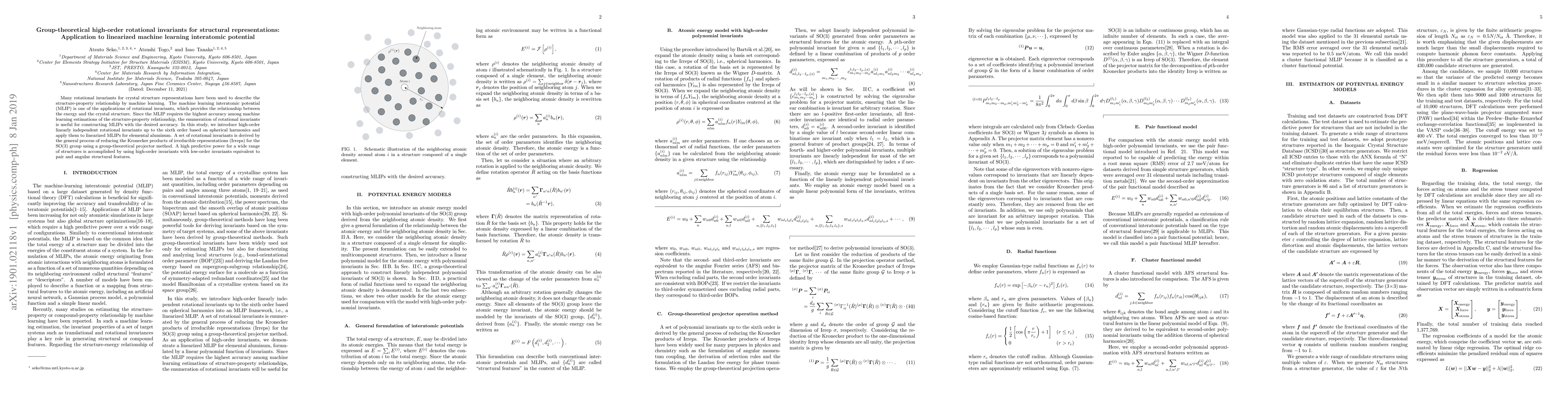 This paper introduces high-order rotational invariants up to the sixth order for constructing machine learning interatomic potentials (MLIPs) with high accuracy. The invariants are derived using a group-theoretical projector method based on spherical harmonics and applied to MLIPs for elemental aluminum, achieving high predictive power across various structures.