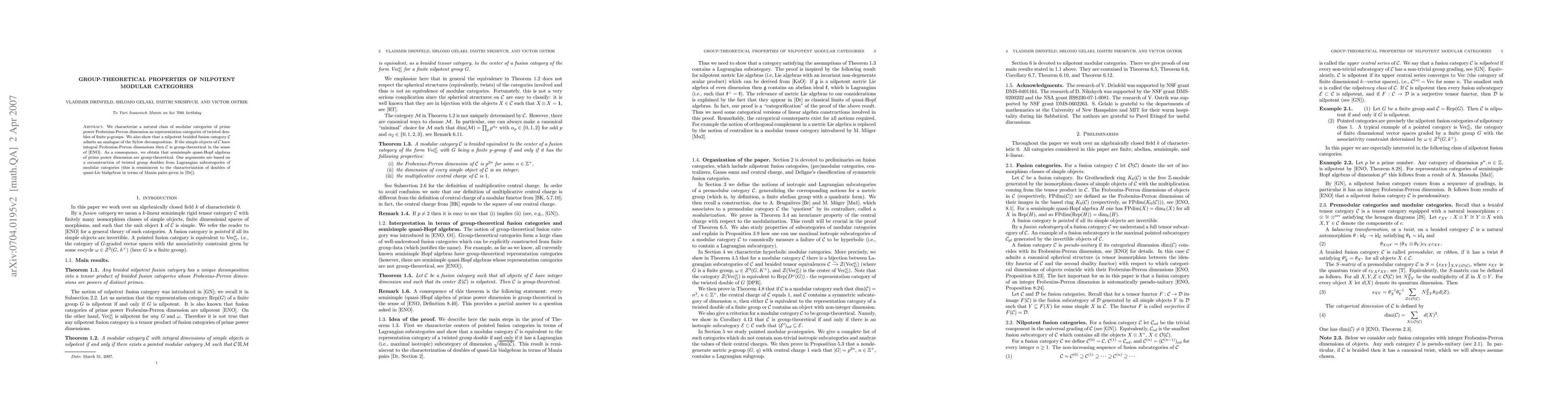 We characterize a natural class of modular categories of prime power Frobenius-Perron dimension as representation categories of twisted doubles of finite p-groups. We also show that a nilpotent braided fusion category C admits an analogue of the Sylow decomposition. If the simple objects of C have integral Frobenius-Perron dimensions then C is group-theoretical. As a consequence, we obtain that semisimple quasi-Hopf algebras of prime power dimension are group-theoretical. Our arguments are based on a reconstruction of twisted group doubles from Lagrangian subcategories of modular categories (this is reminiscent to the characterization of doubles of quasi-Lie bialgebras in terms of Manin pairs).