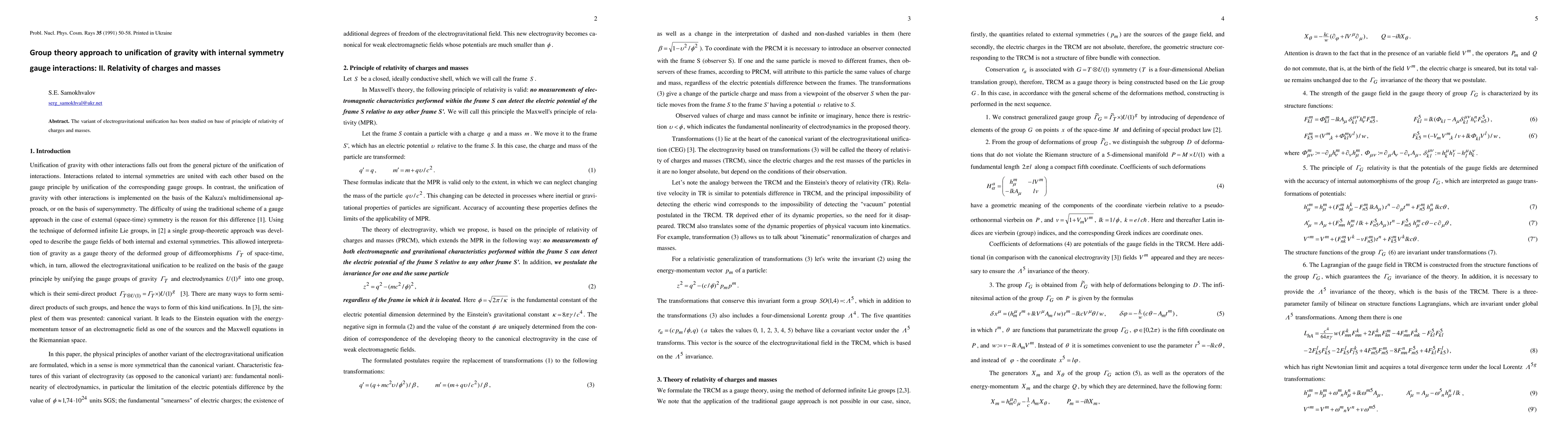 This paper explores a new approach to unifying gravity with internal symmetry using the principle of relativity of charges and masses. It proposes a variant of electrogravitational unification that could potentially revolutionize our understanding of fundamental forces.