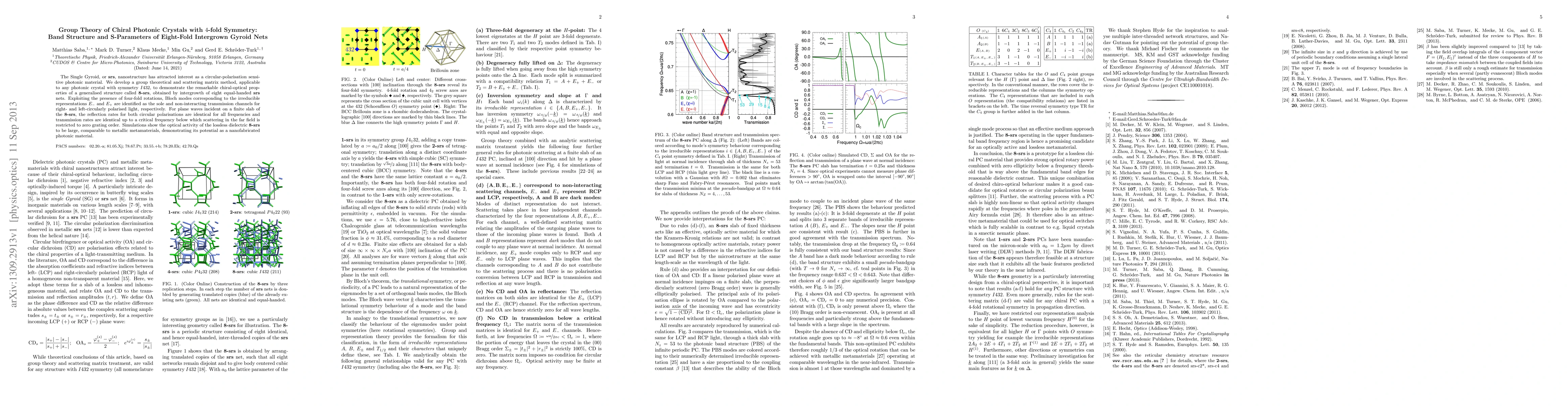 This research introduces a method using group theory and scattering matrices to analyze the chiral-optical properties of an 8-srs photonic crystal, derived from intergrowing eight srs (Single Gyroid) nanostructures. The study finds that right- and left-circularly polarized light transmit through separate, non-interacting channels, exhibiting strong optical activity comparable to metallic metamaterials, indicating potential for nanofabricated photonic materials.