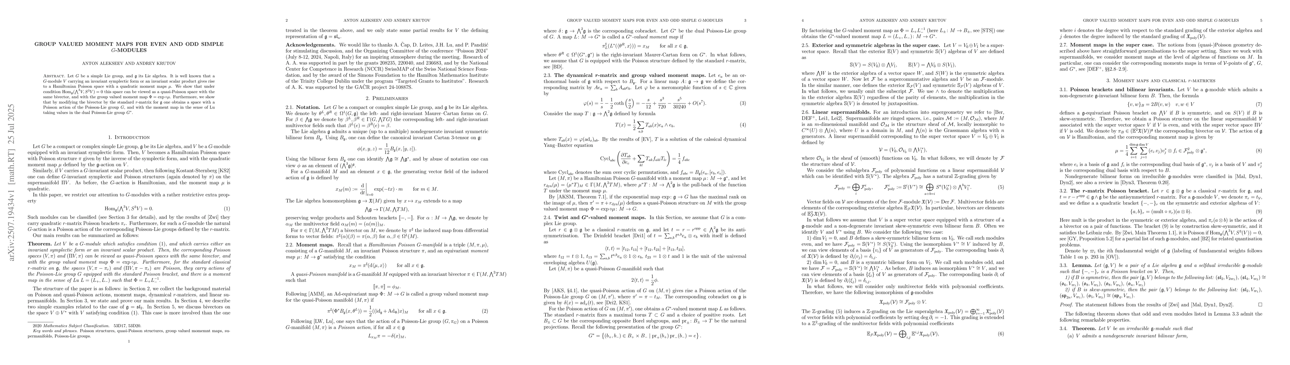 Let $G$ be a simple Lie group, and $\mathfrak{g}$ its Lie algebra. It is well known that a $G$-module $V$ carrying an invariant symplectic form or an invariant scalar product gives rise to a Hamiltonian Poisson space with a quadratic moment maps $\mu$. We show that under condition ${\rm Hom}_{\mathfrak{g}}(\wedge^3 V, S^3V)=0$ this space can be viewed as a quasi-Poisson space with the same bivector, and with the group valued moment map $\Phi = \exp \circ \mu$. Furthermore, we show that by modifying the bivector by the standard $r$-matrix for $\mathfrak{g}$ one obtains a space with a Poisson action of the Poisson-Lie group $G$, and with the moment map in the sense of Lu taking values in the dual Poisson-Lie group $G^\ast$.